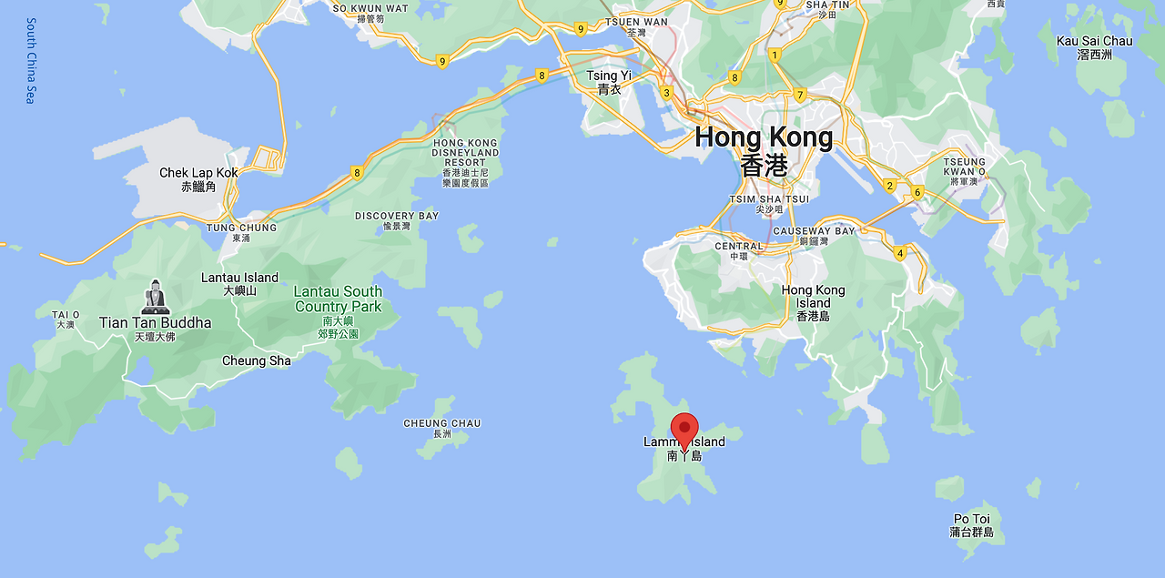 그런 멋있는 사람, 주윤발의 고향이 바로 라마섬이다. 라마섬은 홍콩섬 남쪽의 꽤 커다란 섬이다. 라마섬은 광동어로 南丫島로 표기한다. 광동어로 지명들을 배울 때 보니 큰 섬들은 우리나라처럼 섬 '도'(島) 자로 표기하고 작은 섬들은 지난 글에서 소개한 펭차우처럼 섬 '주'(洲) 자를 쓰는 것 같았다. 홍콩섬(香港島)과 라마섬(南丫島)은 섬 '도'자를 쓰고 나머지 펭차우, 청차우, 텅렁차우, 압레이차우 등 작은 섬들은 다 섬 '주'자를 쓰고 있었다. 그만큼 홍콩 안에서는 꽤 큰 섬인데, 크기는 13.55km2로 여의도 면적의 딱 3배 정도 크기이다. 홍콩섬에서 라마섬에 가는 방법은 두 가지인데 센트럴에 있는 스타페리 피어나 홍콩섬 남쪽의 애버딘 피어에서 페리를 타고 가는 방법이 있다. 두 피어에서 모두 얼추 30분 정도면 라마섬에 도착할 수 있다. 홍콩의 좋은 점은 30분 내외로 페리를 타면 여러 섬들로 데이투어를 다닐 수 있다는 점이다. 주말에 게으름을 조금만 걷어치우면 당일치기 하이킹을 다녀오고도 살짝 시간이 남을 정도이다.