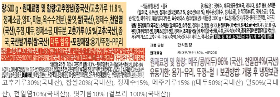 소맥분이 앞에 나오는 상품은 짧은 시간 안에 장류의 맛을 내기 위해 빠른 발효를 후다닥 거친 상품이다. 발효를 안 한 것은 아니지만, 발효식품이라는 타이틀로 우리가 기대하는 효능을 온전히 기대할 수 없다.