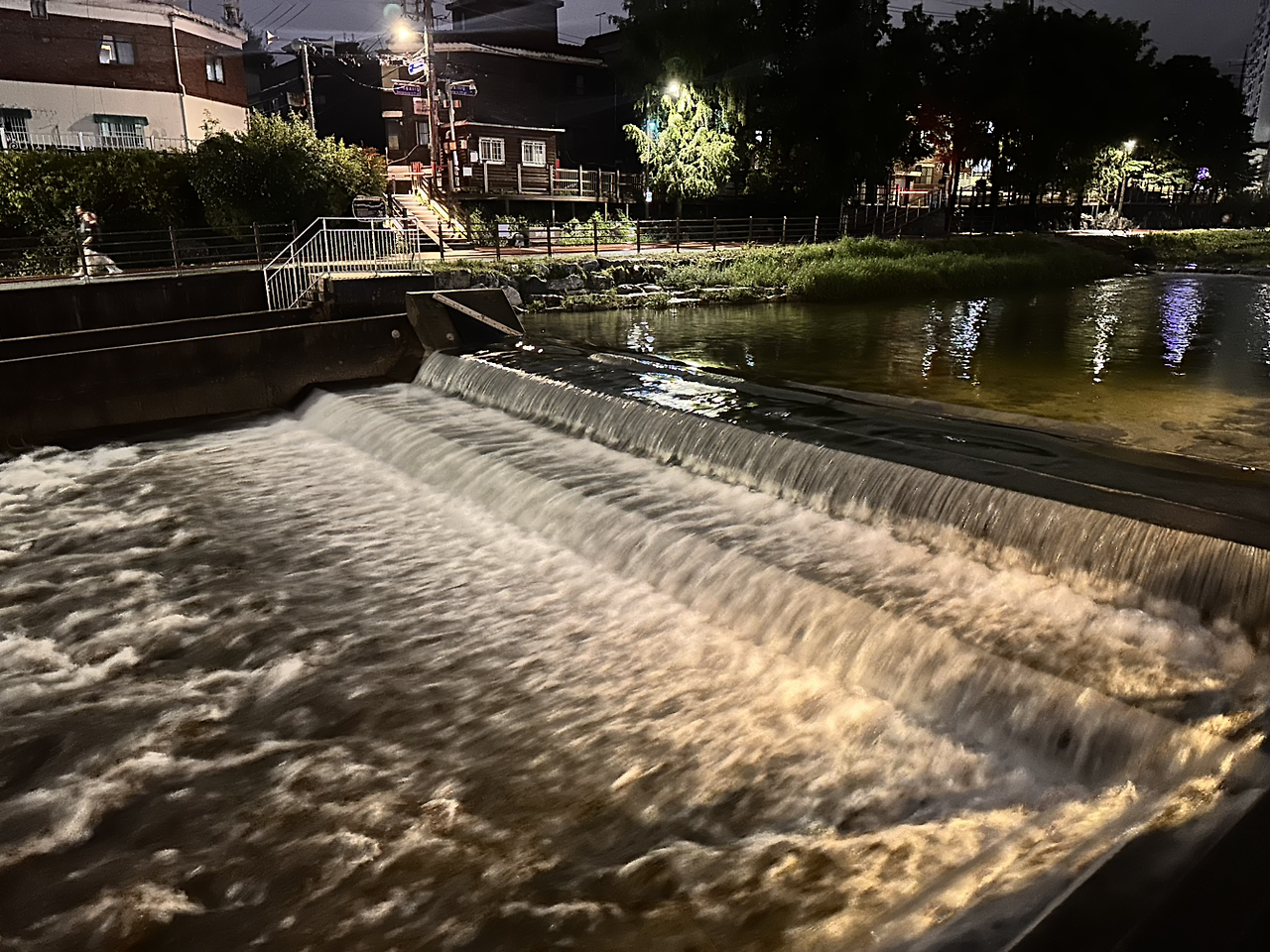 퇴근 후 하천길로 걷는데 방송이 나옵니다. 하천 범람 예정이니 우이천을 걷고 있는 시민들은 밖으로 나오라고 합니다.