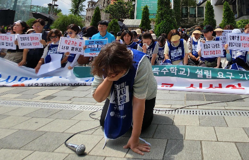 2017년 서울 강서구 서진학교 설립 당시, 장애 학생 부모들은 주민들의 반대에 맞서 무릎을 꿇고 학교 설립을 간절히 호소했어야 했습니다. 그런데 최근, 서울 성동구에 성진학교 설립을 추진하는 중 '무릎 호소'가 되풀이되었습니다. "명품 동네엔 명품 학교"를 외치는 지역 이기주의(님비 현상)로 인해 장애 학생들의 교육권이 가로막혀, 학부모들은 다시 서울시의회 앞에서 무릎을 꿇고 학교 개교를 요청하게 된 것입니다. 이러한 우여곡절 끝에 성진학교는 2029년에 문을 열 수 있게 되었다고 합니다. 교육을 받을 권리는 모든 국민에게 있다는 대한민국에서 장애인도 열외의 대상일 수는 없습니다. 지금껏 기울어져 있던 시소가 언제쯤이면 좀 더 균형을 갖출 수 있을까요?