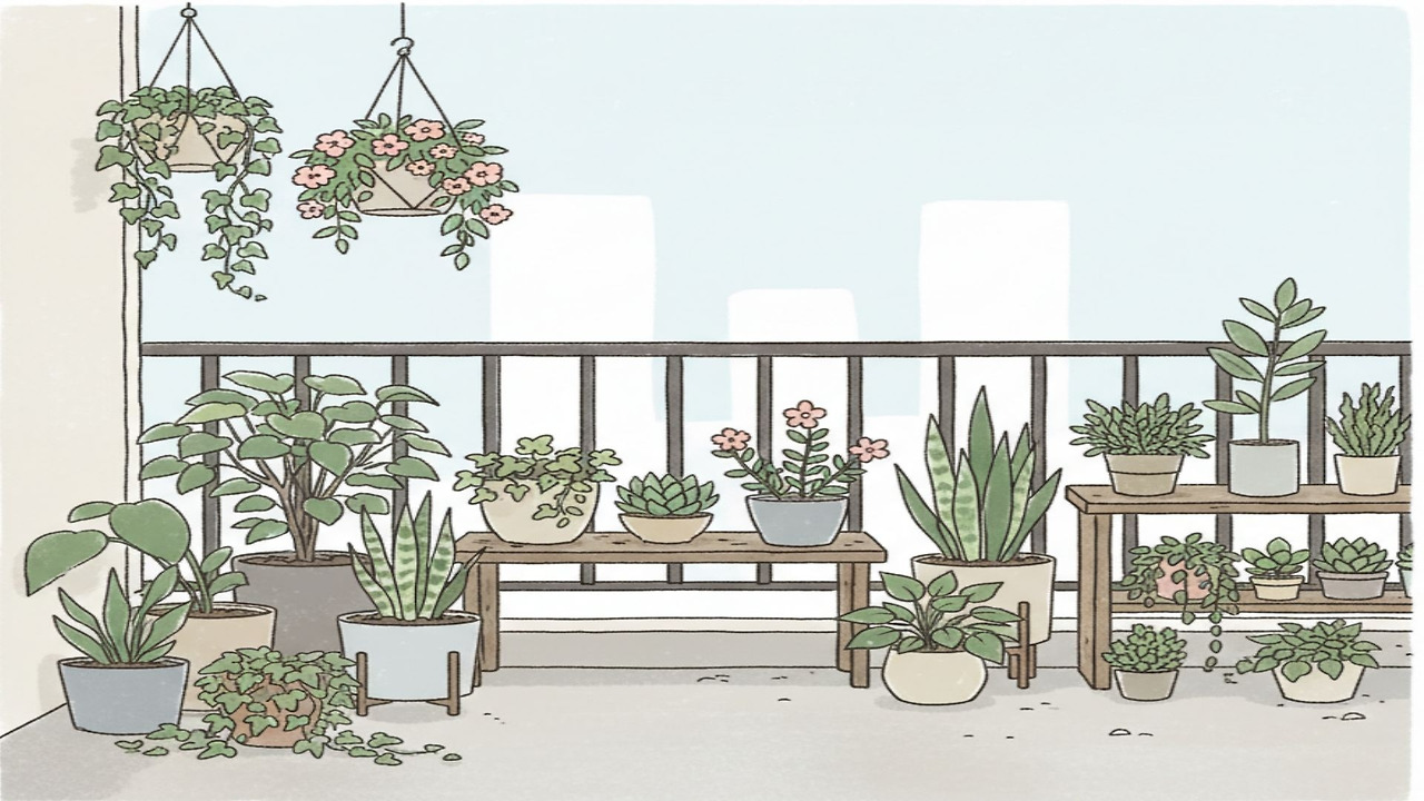 발코니의 작은 식물원 안,