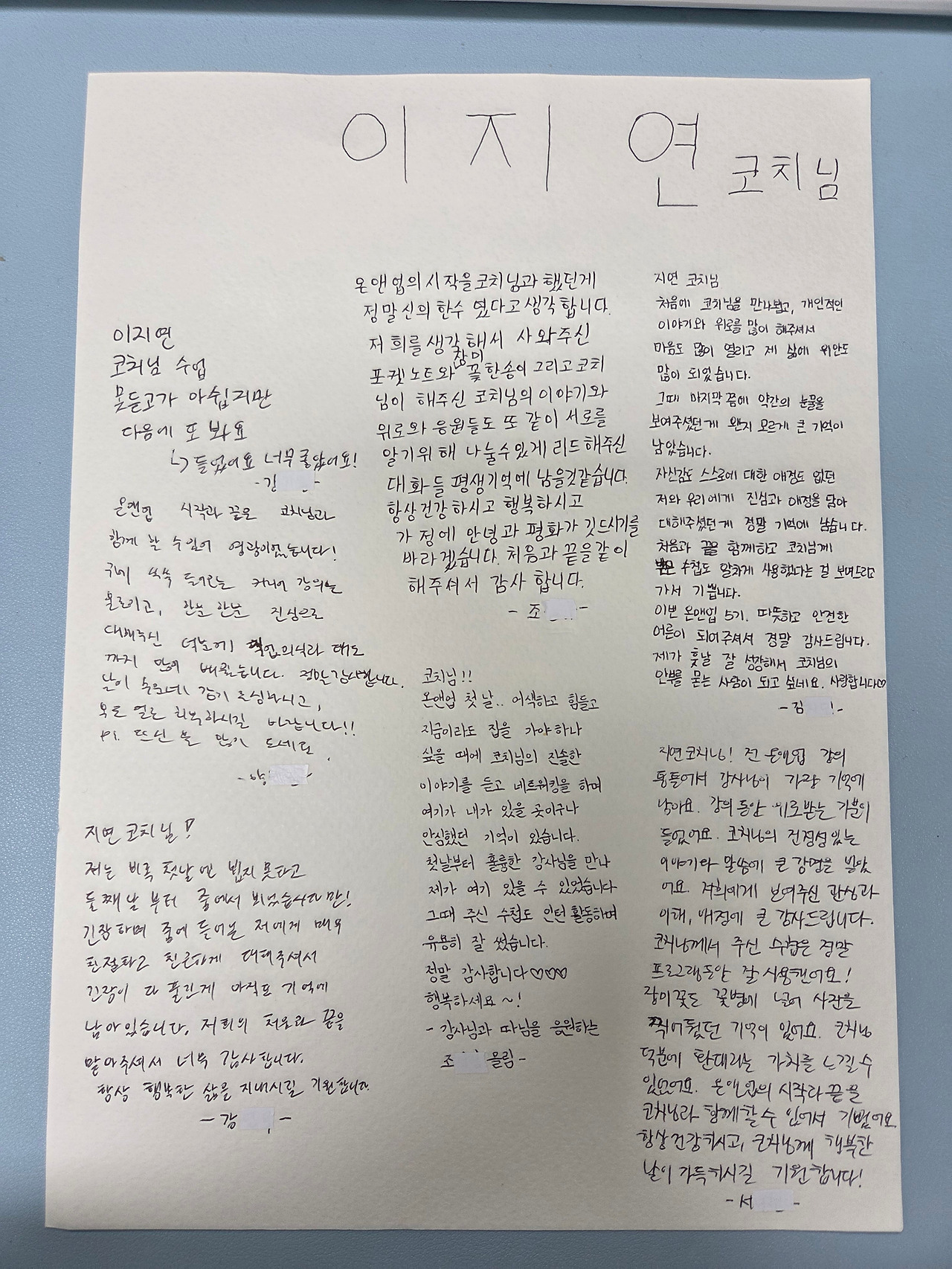 코치라는 직업으로 많은 사람을 만나지만, 유독 마음이 쓰이는 이들과의 경험을 통해 관계의 철이 들어가는 것 같습니다.