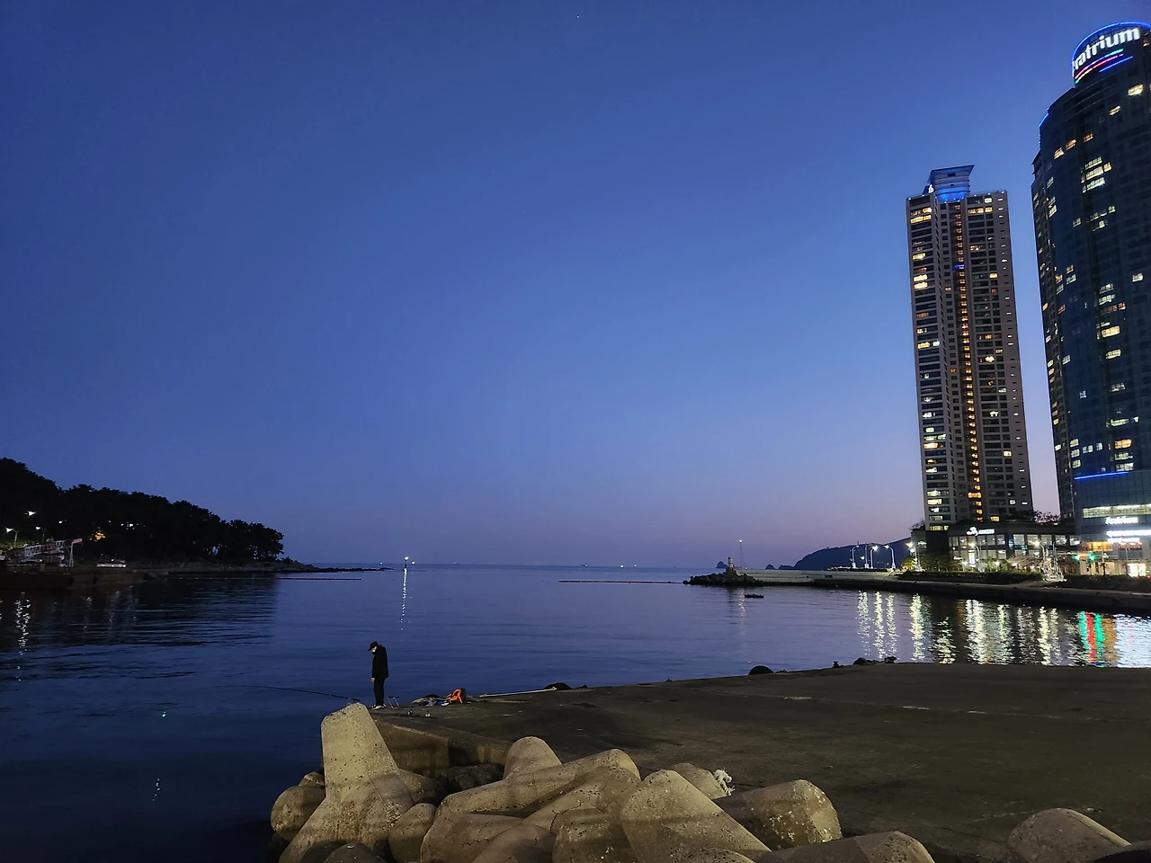 밤이 오면 푸르른 해안도시에 어둠은 깔릴지언정 도시의 화려한 불빛은 부산의 밤마저 비추는 모양이다. 그래서인지 부산의 밤 역시 쉽게 어두워지지 못하고 오히려 남색으로 새롭게 빛나는 느낌마저 든다. 빛공해 때문인지 뭔지는 몰라도 하늘도 바다도 쉬이 잠들지 못하는 도시. 그래서 가끔 부산의 밤바다를 바라보면 어디가 하늘이고 어디가 바다인지 구분할 수 없고 어둠이 깔리는지 걷히는지 시간을 가늠할 수 없다. 부산의 하늘과 밤은 언제 비로소 쉴 수 있을지 문득 측은한 마음까지 드는 걸 보니 글 쓰는 지금 이 순간, 밝지만 어두운 남색의 밤이 찾아왔나 보다.