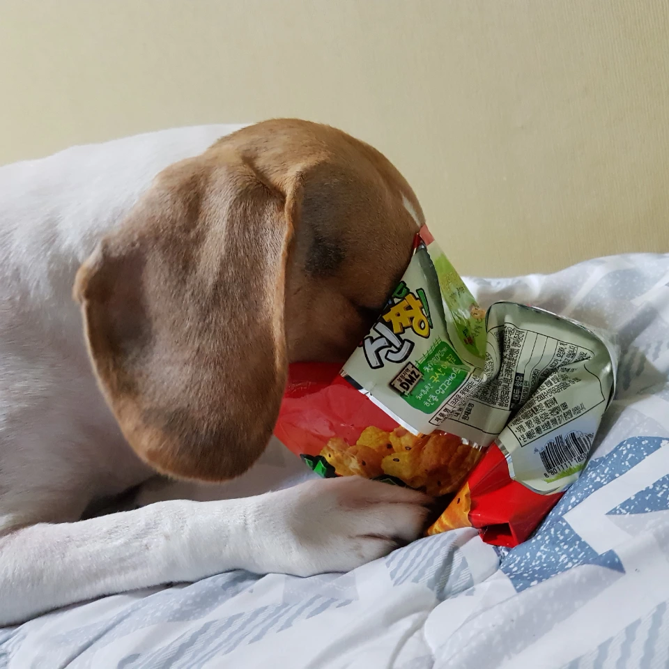 변명같긴한데 실제로 식탐이 없는 비글이 존재한다는 걸 들어본 적이 없다. 전국에 거주하는 반려인의 마이너리티, 비글 견주님들의 인스타에는 하루에도 몇 건씩 <우리 개가 이것까지도 먹었다!>는 제보가 속출한다.
