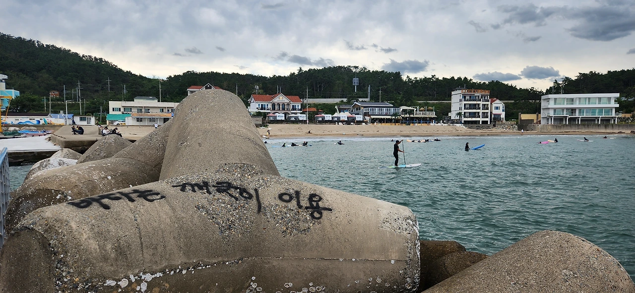 한쪽에는 시골바다 방파제의 느낌을 잃지 않은 길이 있어서 따라가 보았다. 낚시를 하는 사람들도 보였고 멀리 서핑을 하는 사람들도 보였다. 정박해 둔 고기잡이 배가 바람 따라 흔들리니 비린내가 훅, 훅, 밀려왔다. 흘러가는 바닷바람 속에 섞인 바다 비린내는 어쩐지 겨운 느낌마저 주었다.