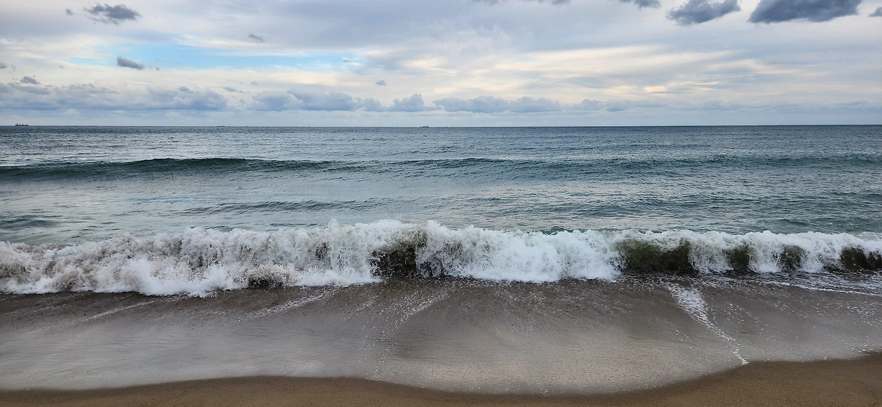 시간이 오후 5시였으므로 시시각각 저무는 해에 하늘색이 자꾸만 바뀌었다. 하늘이 변하니 바다의 색도 따라 달라졌다. 모래사장이 끝나는 지점에 세월이 느껴지는 건물을 뒤로한 채 벤치가 쪼르르 서 있었다. 거기에 앉아 한참을 파도소리에 취하다가, 밝았다 또 우울해지는 바다를 보았다가, 저기 저 뒤 시선에 머무는 파도가 크게 살아나서 힘차게 부서지기를 바랐다. 또 이어폰을 꽂고 노래를 조금 듣다가, 엄마아빠를 따라온 귀여운 꼬맹이가 우다다다 다가와 옆에 앉길래 조금 웃었다가, 다시 생각의 스위치를 끄고 멍하니 파도를 바라보았다.