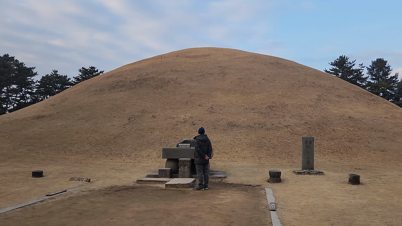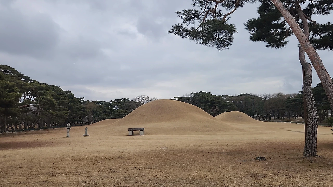 ... 는 충격충격 대충격. 입장권 내고 오릉에 들어갔는데 사람이 아무도 없어서 뭔가 서늘한 느낌이 들기 시작했다. 특히 봉분에 다다랐을 땐 뭔가 아무리 왕이지만서도 남의 무덤가에서 홀로 사진을 찍자니 멋쩍어서 얼른 발걸음을 옮겼다. 그때였다. 우다다아아. 파사사사사. 이상한 소리가 들려 깜짝 놀라 쳐다보니 고라니인지 노루인지 모를 녀석들이 도망가고 있었다! 그들도 놀랐겠지만 내가 더 놀랐다 이 녀석들아ㅠㅠ 거의 졸도할 뻔했다.