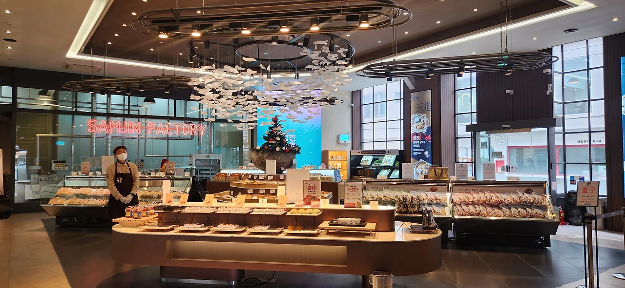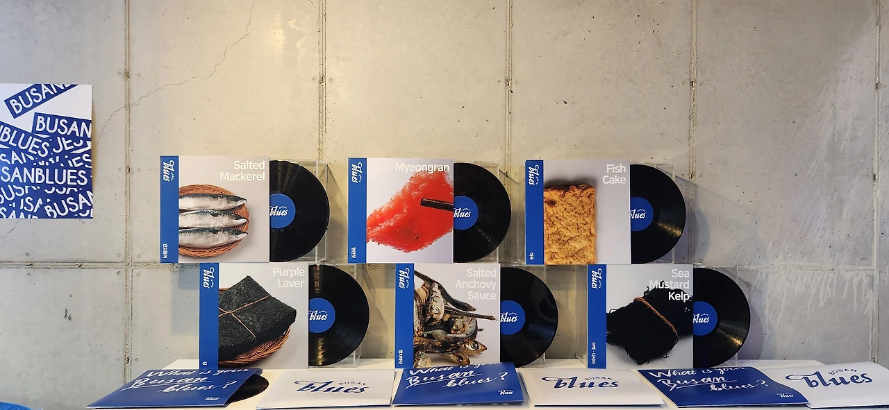 중간에는 부산블루스라는 힙한 공간이 눈길을 끌었다. 단순히 인스타 사진을 위한 힙한 공간이 아니라 부산명품수산물협회라는, 이른바 부산을 대표하는 수산물 업체들이 한데 모여 바다도시 부산의 대표적인 수산물을 홍보하는 일종의 홍보관이었다. 삼진어묵은 물론이고 일전에도 언급한 적 있는 부산의 명란과 기장 미역, 다시마 등 익숙한 수산물들이 감각적인 LP판의 모양으로 재해석되어있었다. 비릿한 수산물을 LP판으로 탈바꿈해서 이 힙찔이의 시선을 사로잡는 걸 보니 '이런 게 홍보지' 었달까.
