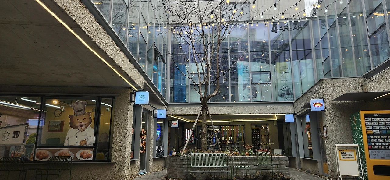 기분 좋게 한 바퀴 돌고 나오면 건물 사이에 총총총 박힌 알전구가 보인다. 밤이면 불이 꺼져 어두운 오래된 골목을 밝힌다는 취지로 알전구들이 일렬로 나란히 서있다. 골목을 살린다는 마음도 예쁘고, 곳곳을 야무지게 채운 로컬브랜드들의 재치도 엿보이고, 무엇보다도 아무 기대 없이 찾은 막다른 골목 뒤편에서 이런 숨겨진 공간을 마주했다는 두근거림이 두고두고 남아 한번쯤은 더 아레아식스를 찾을 듯하다.