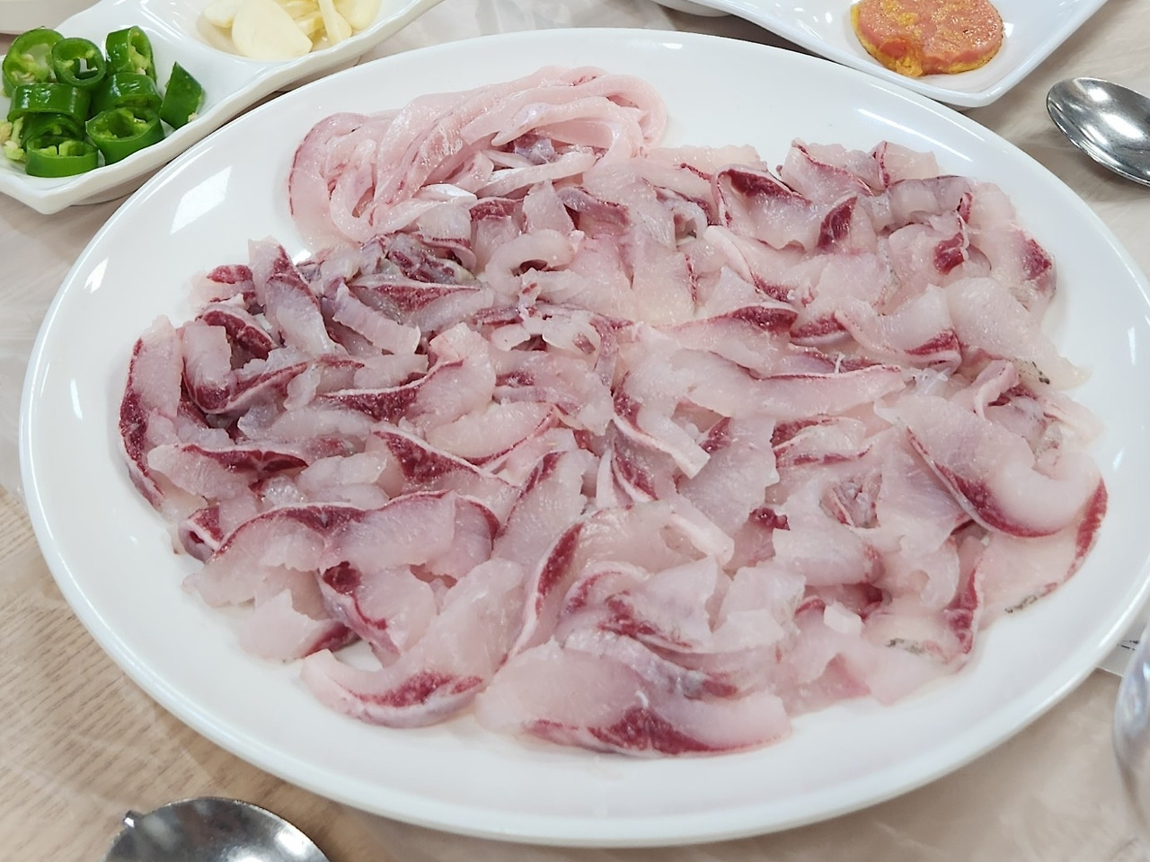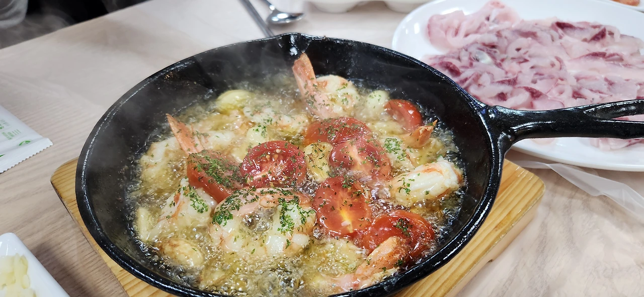 부산의 감성을 물씬 느낄 수 있는 저녁장소를 찾다가 맛도 맛이지만 갬성 가득한 남천해변시장으로 향했다. 광안리 해수욕장에서 남천동으로 걸어서 이동했는데 마침 부산의 벚꽃 명소 중 하나인 삼익비치타운을 지나갈 수 있어서 꽃구경까지 덤으로 즐길 수 있었다. 서울에서 온 친구들에게 추천하고 싶었던 식당은 남천해변시장 지하에 위치한 '왕초장'이라는 초장집인데, 이곳은 또 특별한 것이 회는 물론이고 감바스나 두루치기 같은 신선한 메뉴를 맛볼 수 있다. 시장 앞 위치한 옵스 빵집에서 바게트 한 봉지를 구매해 감바스를 시켜 먹는 것이 이 집의 매력이라 도착해 보면 거의 모든 테이블 위에 옵스 바게트빵이 올려져 있는 것이 재미있다. 콜키지도 가능해 부산을 찾아준 친구들에게 고마움을 선물하고 싶어 미리 준비해 온 사케 한 병을 가져갔는데 이 역시 만족도 최상이었다.