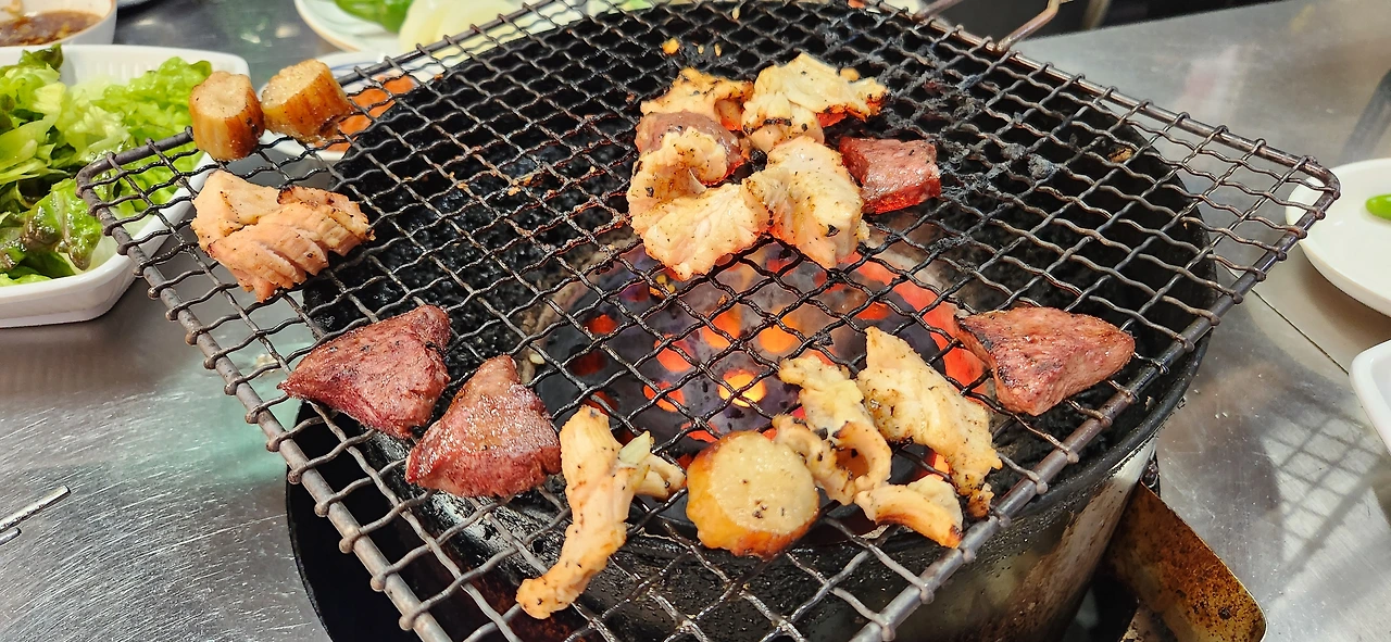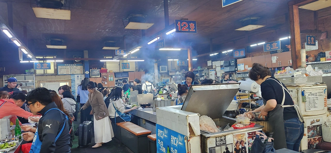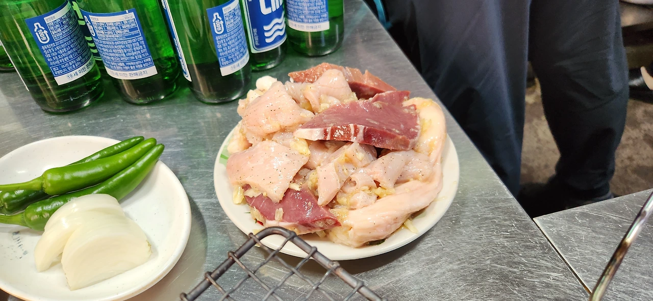 부산역에서 멀지 않은 곳에 위치하고 있는 남포동 자갈치시장에는 양곱창골목이 있다. 신기하게도 이 글을 쓰면서 양곱창골목을 검색해 보니 자갈치시장을 전국에서 양곱창을 처음 외식메뉴로 판매한 곳으로 본다는 기사까지 있다. 부산은 정말이지 까도 까도 새로운 양파 같은 곳임이 분명하달까! 여하튼 자갈치시장이 양곱창의 시발점인지는 확실하지 않지만 옹기종기 모인 노포에서 연탄불에 이모가 직접 구워주는 양곱창 '이모카세'를 만나볼 수 있기에 골목은 언제나 북적인다. 부산은 또 특이하게 주로 양, 곱창, 대창, 막창, 염통 등을 한꺼번에 내어주는 모둠구이로 판매하는 곳이 많은데 그도 그럴 것이 곱창집에 가서 '곱창 주세요' 했다가 '곱창 말고 모둠 드이소'라고 모둠구이를 추천받은 게 한두 번이 아니다.이곳 양곱창골목도 주로 모둠구이를 판매하니 참고할 부분이다.