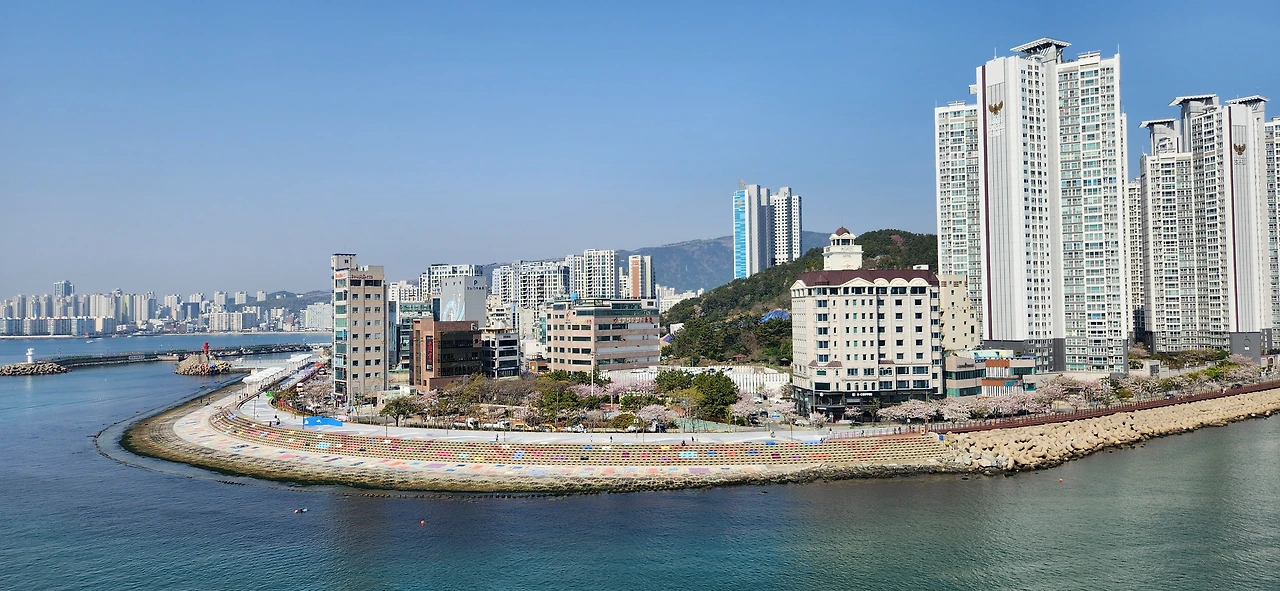 남천동 삼익비치타운을 옆으로 쭉 이어진 방파제는 광안대교 다음 코스다. 여기서부터는 짧은 8k(혹은 10k) 코스가 제법 벅차게 느껴지는데 이 구간에서 삼익비치의 벚꽃길에서 인증샷을 남기느라 한숨 돌리게 된다. 우리는 전날에 남천동 향하는 길목에서 벚꽃을 실컷 즐겼으므로 짧게만 서있다가 다시 모래사장으로 이어지는 코스로 발걸음을 옮겼다. 이 마라톤이 끝나면 돼지국밥으로 해장할지 밀면으로 해장할지 고민하다 보면 금세 광안리 해수욕장 중턱에 이르게 되는데 이곳이 바로 마라톤의 끝이다. 작년에는 같은 코스를 1시간이 채 안 되는 시간에 마무리하였는데 올해는 그보다 20분 더 걸려 도착하였지만 말 그대로 Fun run이었기에 기록은 크게 중요하지 않았다. 그저 숙취에 시달리면서도 끝끝내 뛰었다는 뿌듯함만이 남았달까!