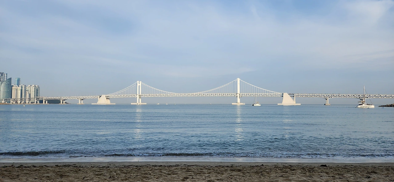 광안대교는 해상 복층 교량으로 아래층(1층)은 해운대로 향하는 방면이고 위층(2층)은 부산 도심으로 향하는 방면인데, 날씨 좋은 날 해운대에서 부산 도심으로 향하는 광안대교의 상층을 지날 때에는 왼쪽에 가지런히 놓인 수영만의 요트를 지나 마린시티의 마천루가 보이고 반대쪽에는 민락동에서 남천동을 잇는 광안리 해변이 시원하게 뻗어있다. 부산에 산 지 이제 1년 반을 지나고 있지만 나 역시 광안대교를 건널 때면 이상한 설렘을 느끼곤 한다. 그도 그럴 것이 날씨에 따라 바다색이 다르고 해무가 있다 없다 해서 그리는 풍경이 또 다르고 계절 따라 해운대와 광안리 해변의 모습이 시시각각 변하니 오늘은 어떤 모습일까 하고 기대하게 된다.