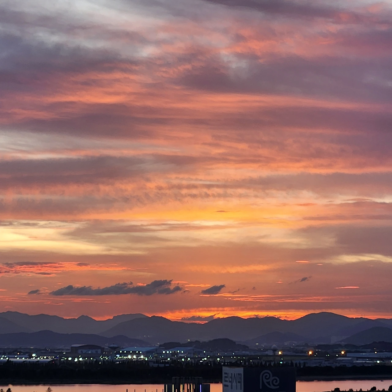 무엇보다도 이 동네의 가장 큰 매력은 황홀한 낙조를 매일 마주할 수 있다는 점이다.해는 동쪽에서 떠서 서쪽으로 지기 마련이니깐, 동부산인 해운대에서 뜬 해는 이곳 낙동강변을 따라진다. 올해 1월 1일 해돋이를 부산의 동쪽인 해운대 해변에서 보았는데, 한 해의 절반이 지나니 어느새 해가 지는 서쪽에서 매일 저무는 여름날의 해가 만들어내는 노을을 보고 있다는 점이 흥미롭게 느껴진다.