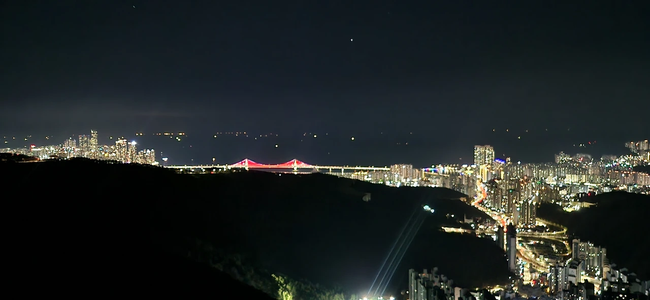 전망대에는 조선시대에 쓰였다는 봉수대가 있는데 그 근처에 커다란 통신탑이 도시를 비추는 거대한 크리스마스 트리처럼 조명을 내뿜고 있었다. 이곳은 또 도심에 위치하고 있지만 도심의 불빛은 산자락 아래에 두고 온 덕에 어두운 밤하늘에 듬성듬성 별도 보였다. 멀리 보이는 광안대교를 보니 부산사람들이 불꽃축제를 하는 날이면 왜 이곳 황령산 전망대까지 찾아오는 이유를 알 것 같았다. 도심의 꼭대기 위에서 어두운 밤하늘 아래 저 멀리 어두운 밤바다를 배경 삼아 터지는 불꽃이라니, 이곳만큼 명당은 없겠다는 생각이 들었다.
