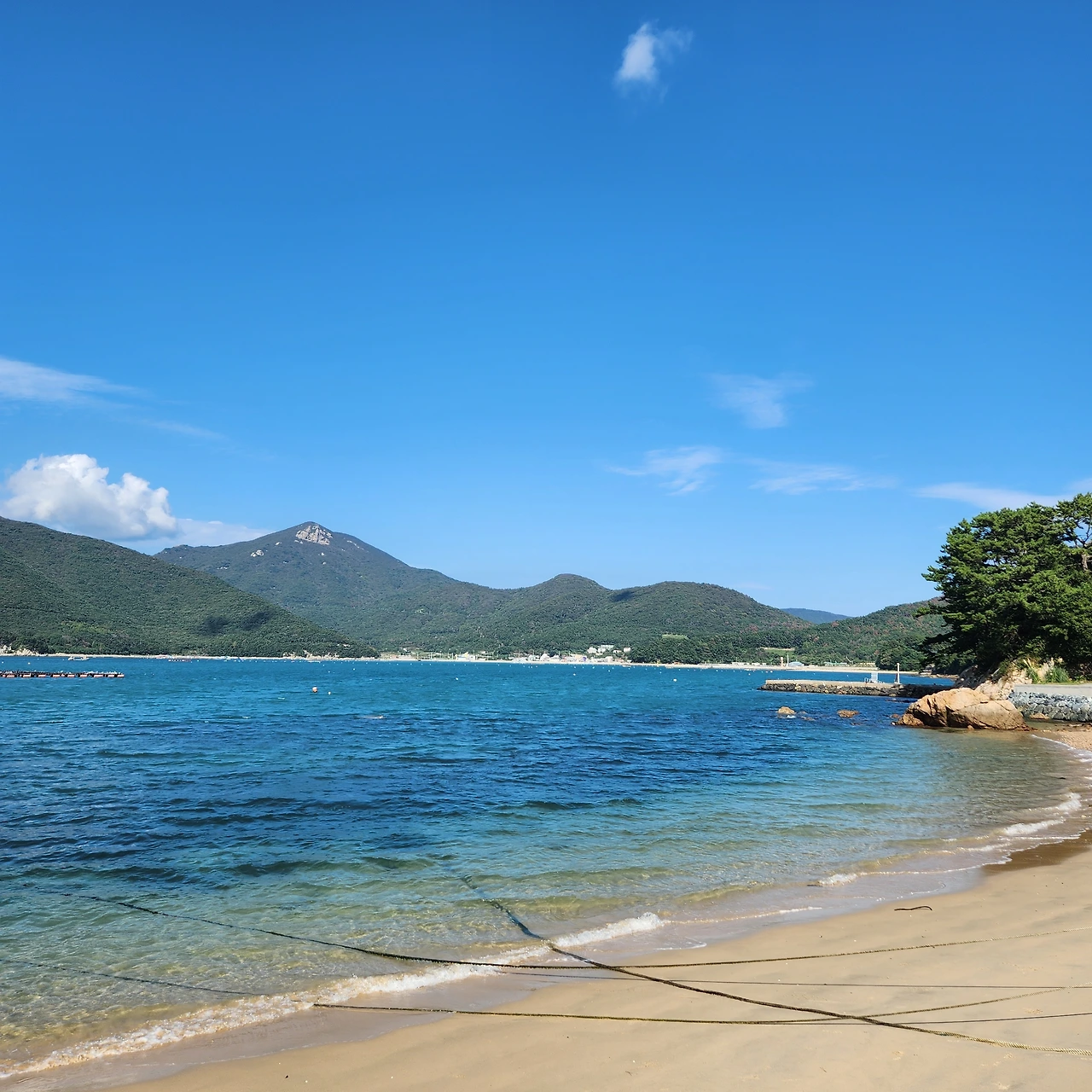 거제에서도 제법 깊숙한 남단에 위치한 곳이라 사람의 발길이 많이 닿지 않는 한적한 동네였는데, 해변이 특히 아름다워 우리나라에도 이런 물 색깔이 있나 싶은 생각이 들었다. 안내해 주시던 동네분의 말씀처럼 어떻게 찍어도 그림이 되는 풍경이었다! 근처에 카페에서도 망망대해 오션뷰를 즐길 수 있었는데 커피 맛보다도 부산과는 또 다른 오션뷰에 한동안 멍 때리고 먼바다만 바라보다가 숙소로 돌아왔다.