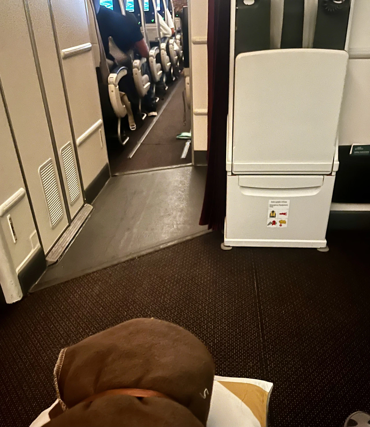 그래 스타트. 말 그대로 이 비상구 석 배정은 시작에 불과했으니. 이어지는 비행에서 나, 그러니까 우리 부부는 2회마다 1번 꼴로 행운이 팡팡. 원래보다 좋은 좌석(뭐라 부르는지 모름)으로 배정이 된다거나, 우리 앞뒤만 모두 비워지고 나머지 좌석은 풀부킹. 거기다 그 비행기는 뒷문으로만 출입하는 모델이었다거나 하는 그런.