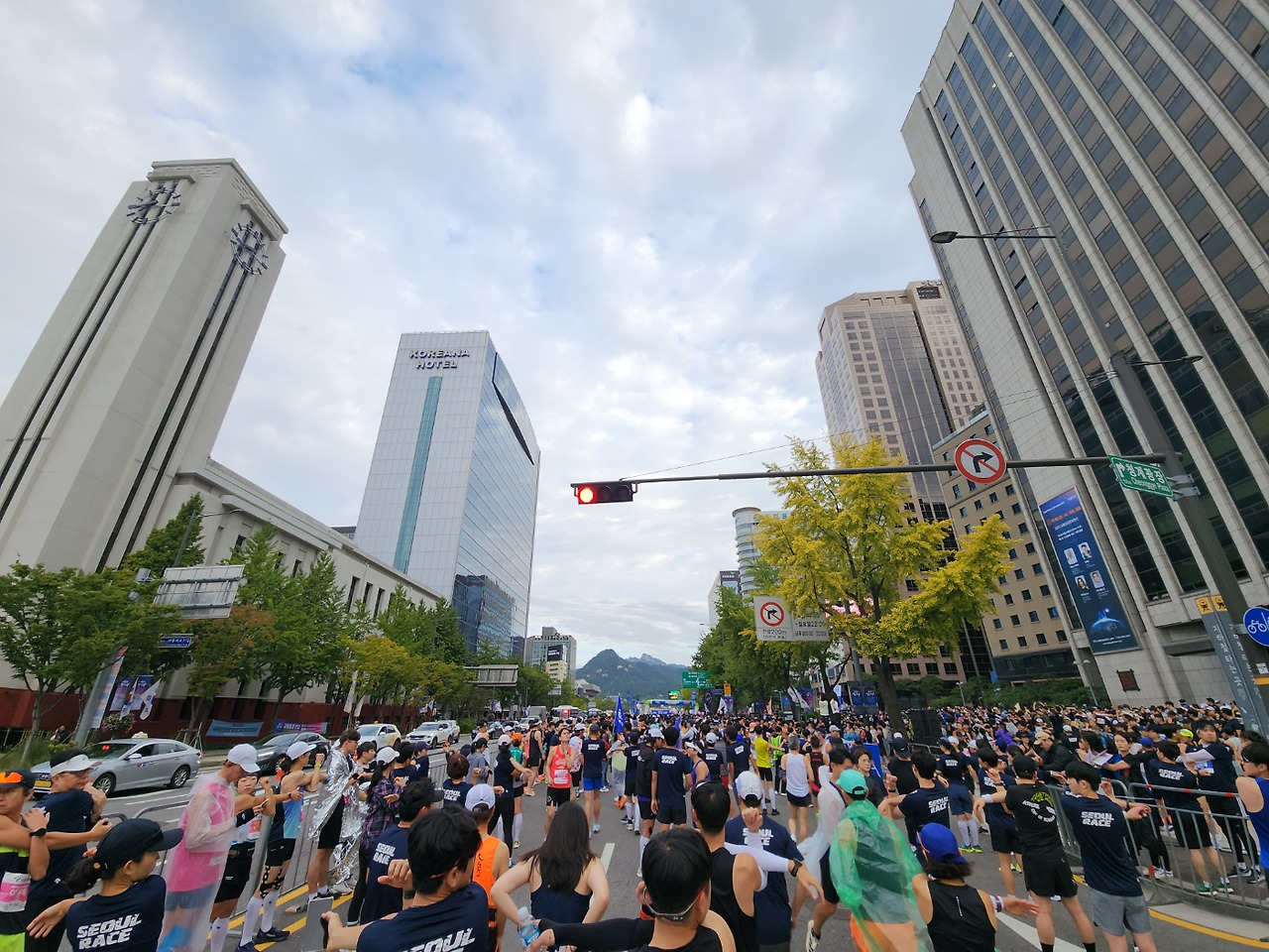 서울 달리기 대회는 사람들이 어마어마해서 10km 지점이 되면 사람들이 흩어지는데 하프 완주까지 계속 옆에서 달리는 사람들이 있어서 힘을 낼 수가 있었다. 조용한 달리기 코스가 도움이 되기도 하지만 기록 경신에는 주변에 사람들이 있느냐에 따라서 보는 눈이 있어서 더 힘을 내는 것 같다. 누군가 보고 있다는 것은 자세부터가 달라진다. 웬만해서는 결코 걸을 수 없다. 경보가 아닌 달리기인 이유다.
