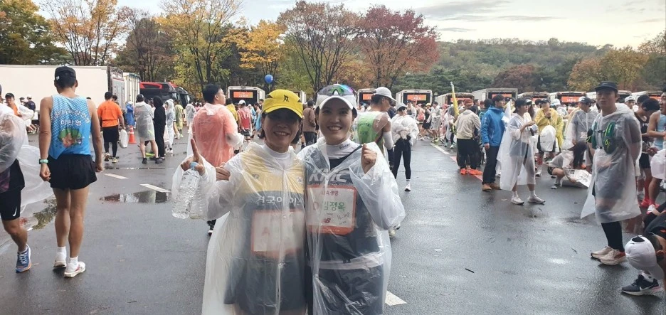 대회로 가는 차 안에서는 초보 러너가 비 오니까 사람들 많이 안 오겠죠? 해서 모두 웃었다. 풀 러너들은 비가 오던, 눈이 오던 거의 다 온다고. 우리도 이렇게 가고 있지 않느냐고. ㅎ