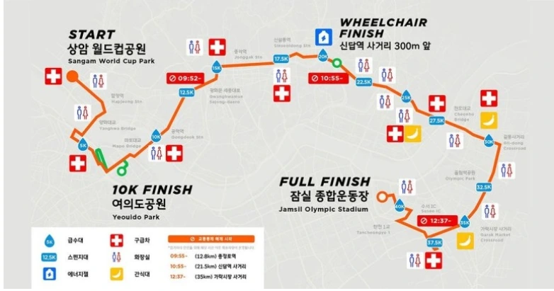 jtbc 대회는 풀코스 5시간 완주 제한 시간이 있었다. 춘천마라톤은 6 시간인데 초보는 사실 5시간 안에 완주하기가 힘들다. 서울이라는 도심이기 때문에 5시간인 것 같다.