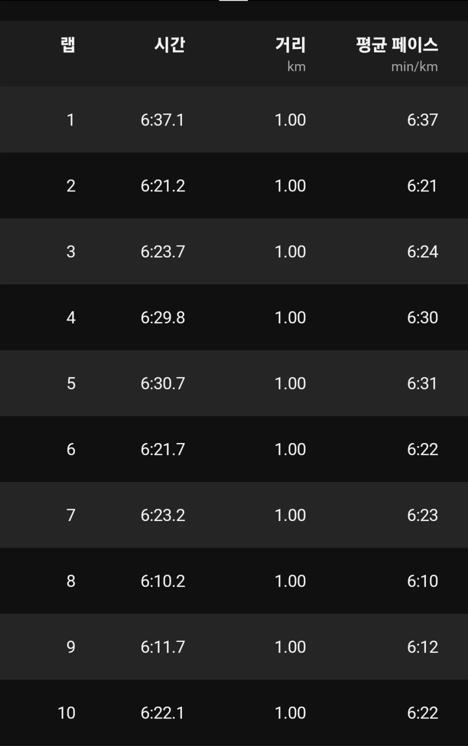 10km까지 6분 25초 전후 페이스로 차분하게 달리기 시작했고 몸도 가벼웠다. 많은 사람들과 달리게 되면 에너지 공명이 있어서인지 힘이 나게 되어 있다. 페이스 오버만 하지 않으면 대회는 성장의 좋은 기회가 된다.
