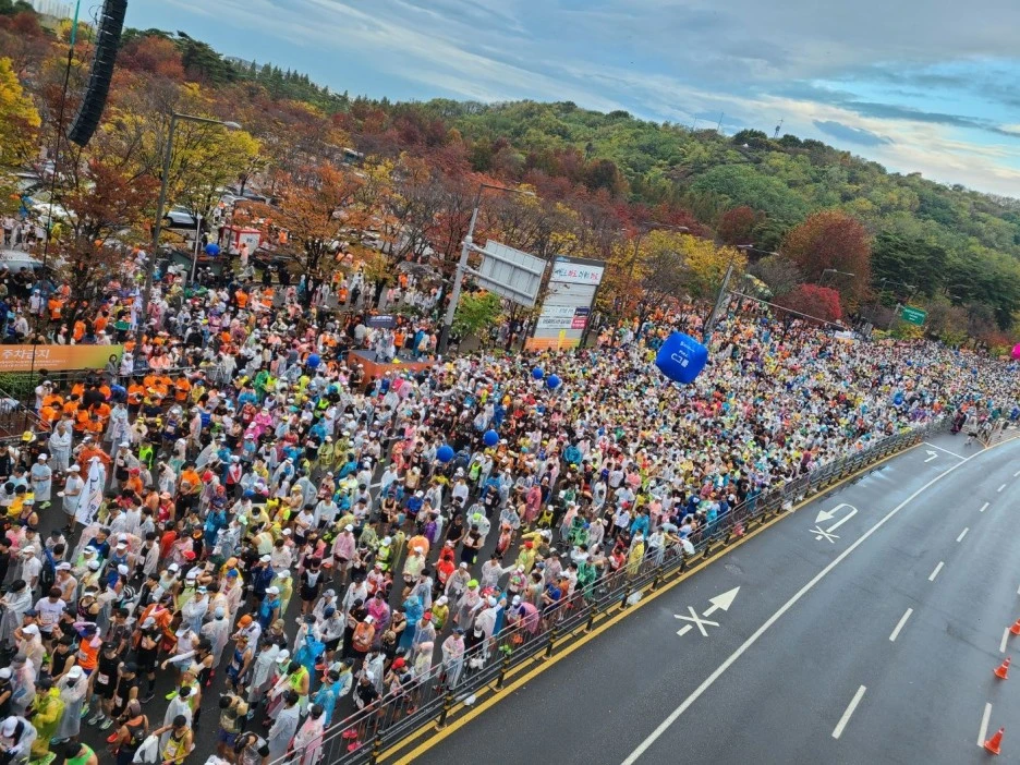 지난달에 동아일보 서울 레이스 하프에 참가했을 때도 사람이 많았지만 이 정도는 아니었다. 그때는 풀코스가 없기도 했다. 사람 조심을 해야 하는 날인가 보다.