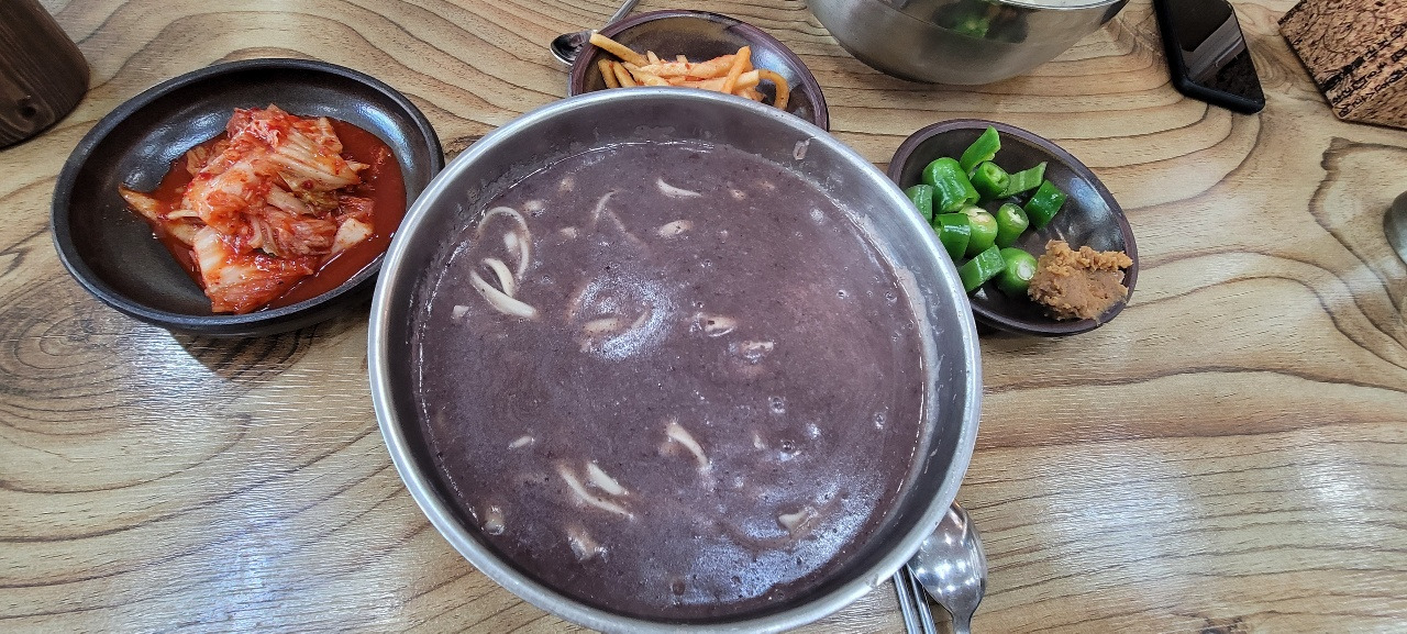 가야읍 '정가네 칼국수'에서 아들은 들깨칼국수를 먹고 싶다고 시켰고 나는 팥칼국수를 시켰다.