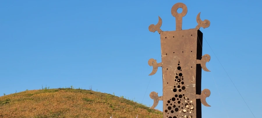 박물관에서 해설사가 설명했던 '미늘쇠'가 보인다. 이 미늘쇠는 철기시대를 나타내 주는 상징물로 옆의 따옴표 같은 모양은 새를 상징한다. 하늘, 땅, 물 어디서나 다닐 수 있는 자유로움을 상징하고 그런 존재를 귀한 영물로 여겼다는 설명을 들었다. 곳곳에서 이런 모양을 보게 되면 더 반갑다.
