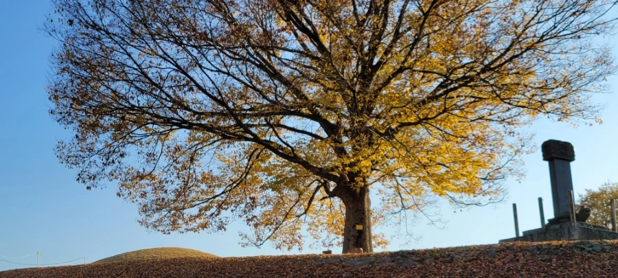 이 나무는 고분보다도 더 큰 영역을 차지하고 있다. 가을과 겨울 사이에 와서 누런 나뭇잎을 보고 있는데 봄이면 어떨까, 여름이었다면 어땠을까 상상을 해보니 그 푸르름에 벅차오르기도 한다.