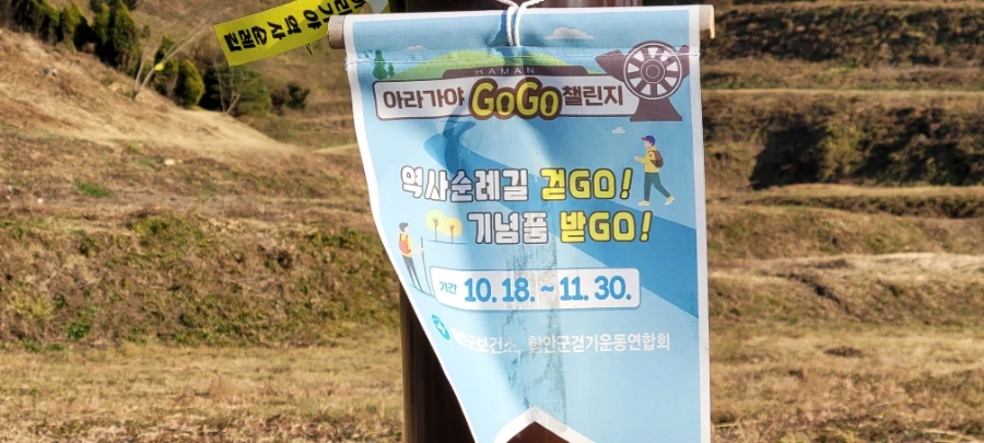 사진 공모전과 아라가야 Go Go 걷기 챌린지를 같이 할 수 있는 방법을 생각해냈다. 함안군 보건소에 전화해 보니 1코스부터 차례차례 걷기 않아도 된다는 말을 듣고 6구간을 먼저 걸으면서 사진 공모전도 참여하기로 했다. 6구간이 함안 박물관과 남문 마을 배수장까지 3.7km인데 말이산 고분군을 대표한다고 생각했기 때문이다. 인터넷으로 1000 명 모집 기간이 지나서 전화해 보니 1000명 이외의 사람들도 전화로 신청하면 소정의 사은품을 준다고 한다. 함안에 와서 걷기만큼 함안을 잘 알 수 있는 기회도 없을 것 같아 완주를 목표로 신청했다.