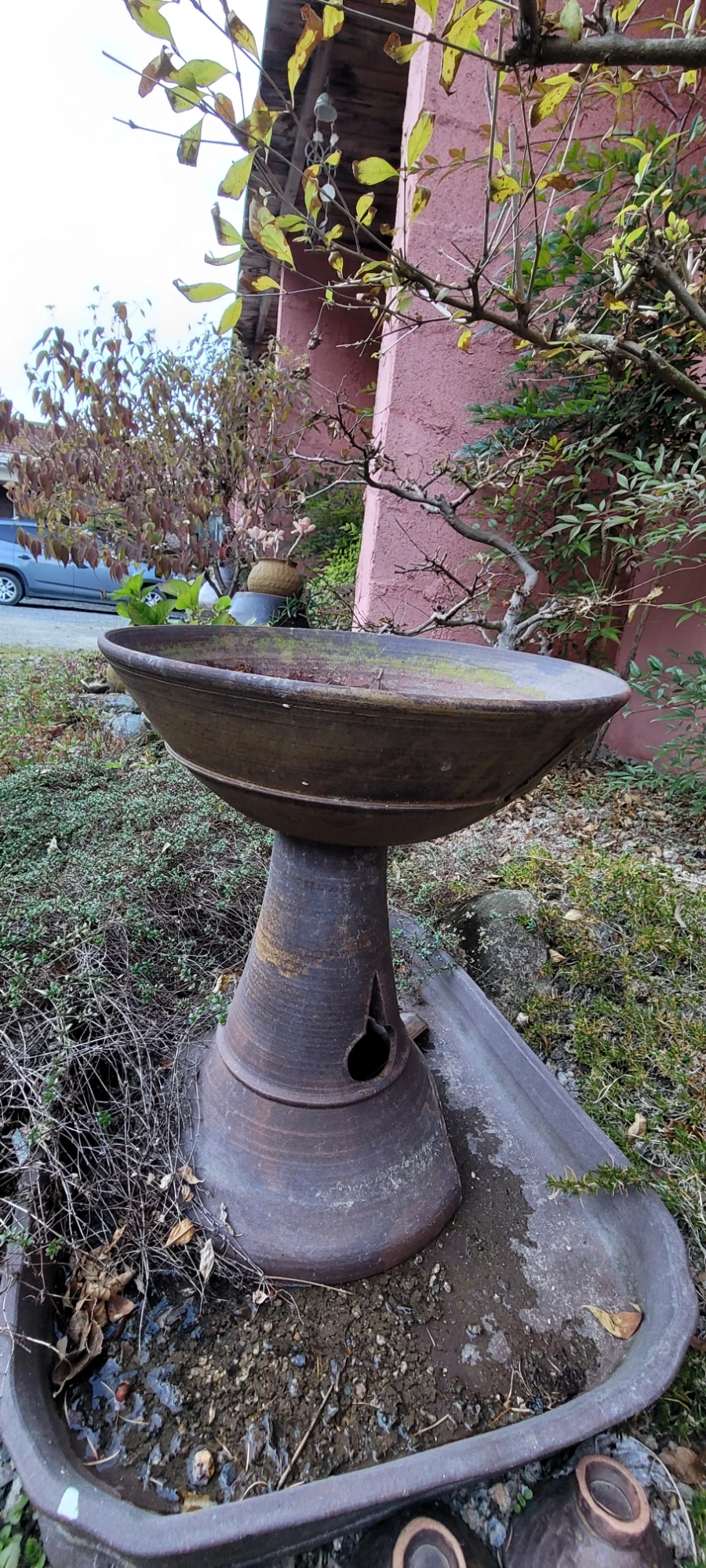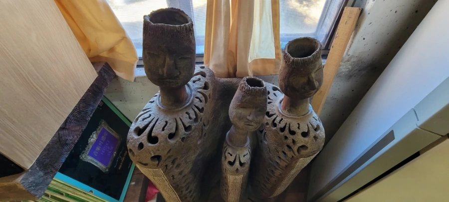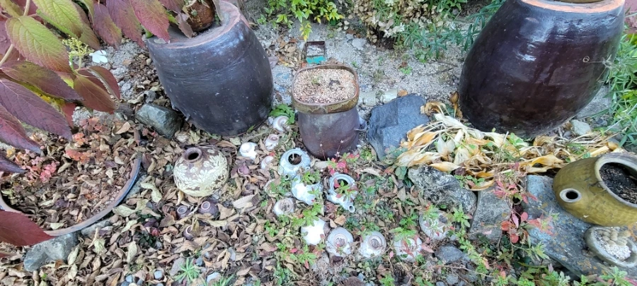 이 작품들은 마당에 막 던져 놓아서 흙에 묻혔다. 묻은 것인지 묻힌 것인지.
