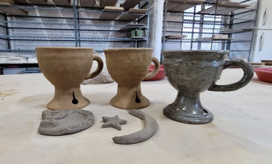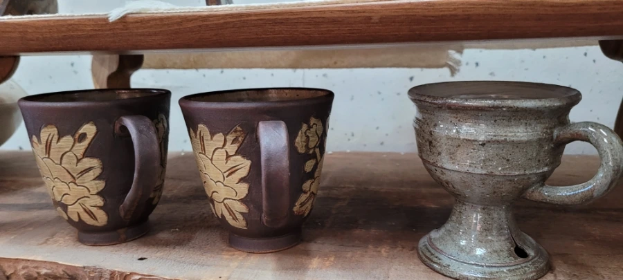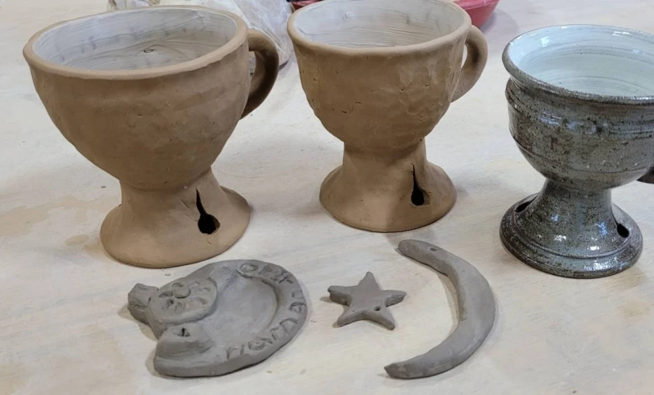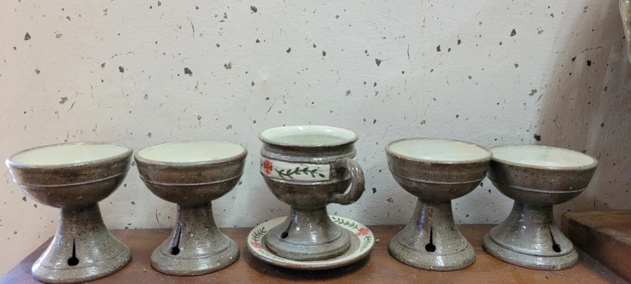 둘러보다가 만들고 싶은 그릇이나 작품을 갖고 오라고 하셔서 불꽃무늬가 있는 맨 오른쪽 컵을 가져갔다. 불꽃무늬 구멍은 작품을 구울 때 열 전도률로 인해 그릇이 깨지거나 망가지는 것을 방지하기 위해서라고 한다.
