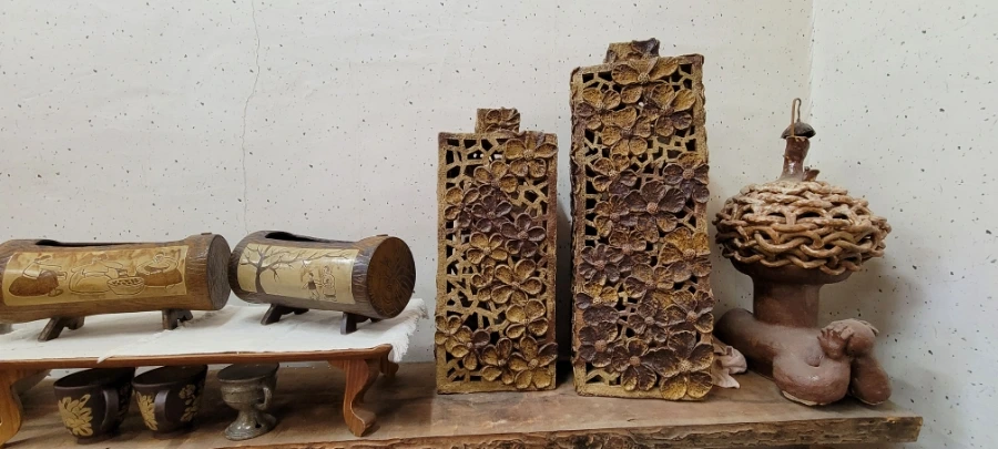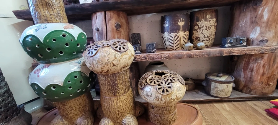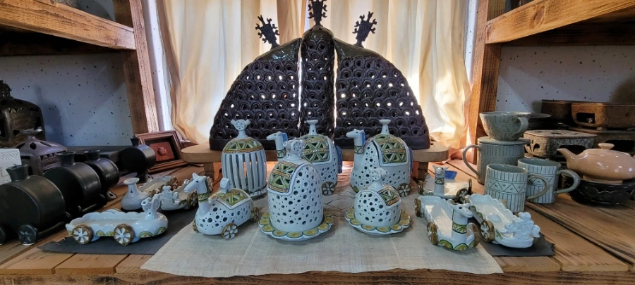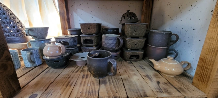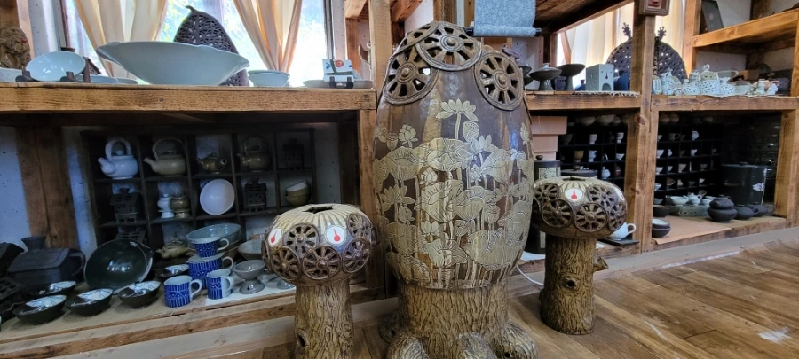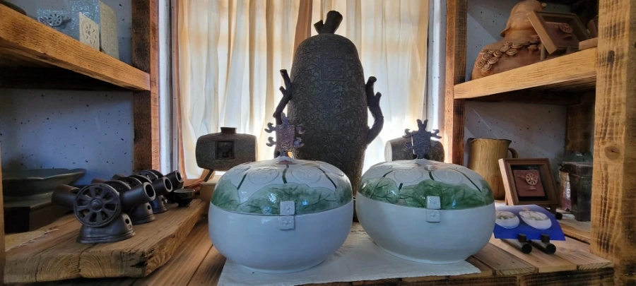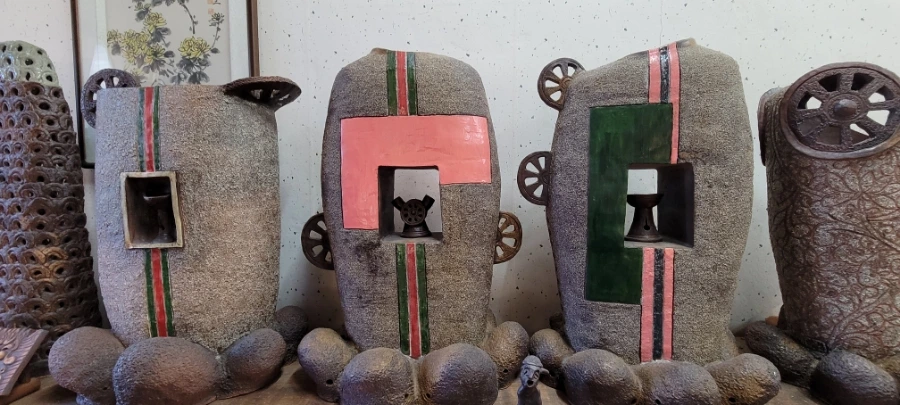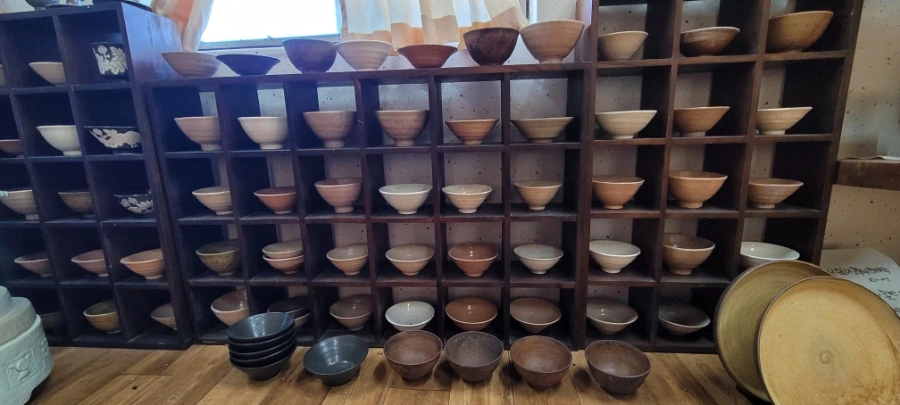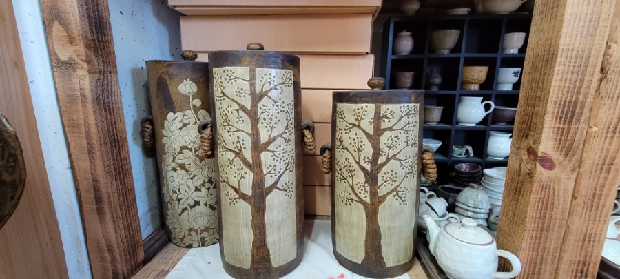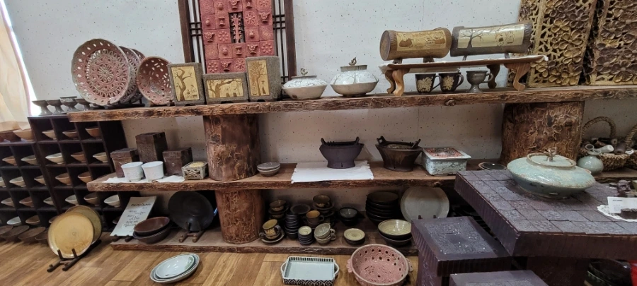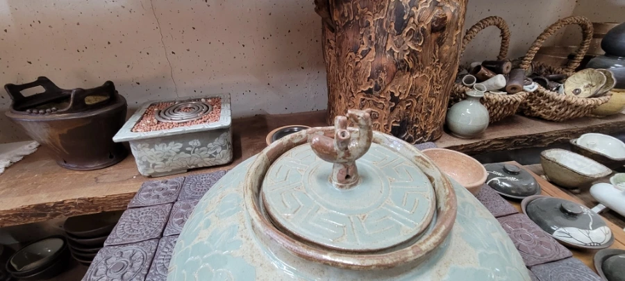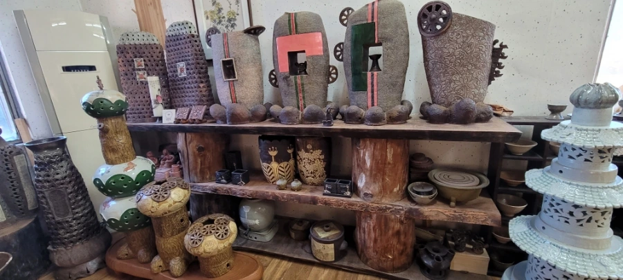 함안 가야에서 20분 정도 택시를 타고 초6아들과 '수곡도예'에 도착했다. 부부가 운영하는 '수곡도예'다. 작품들이 전시해 있는 방을 구경하라고 해주셨는데 무엇보다 만져도 좋다는 말씀을 해주셔서 요리보고 조리보고 , 만져보고, 뚜겅도 열어보고 마음 편히 구경했다. '만지지 마시요!','보기만 하세요'라는 팻말은 거리감이 느껴지는데 그렇지 않아서 편하게 구경했다. 흙으로 만들기 때문에 촉감의 느낌도 상당히 중요하다. 작품감상의 본질을 아는 분인 것 같아서 반가웠다.
