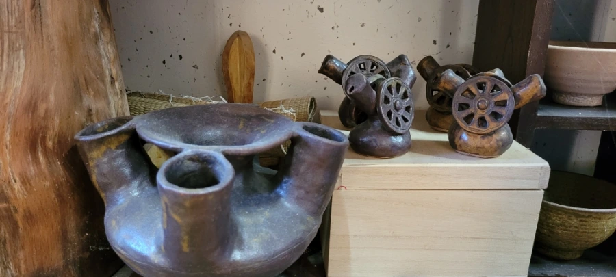 수곡도예 전시실 불꽃무늬 구멍이 있는 토기들
