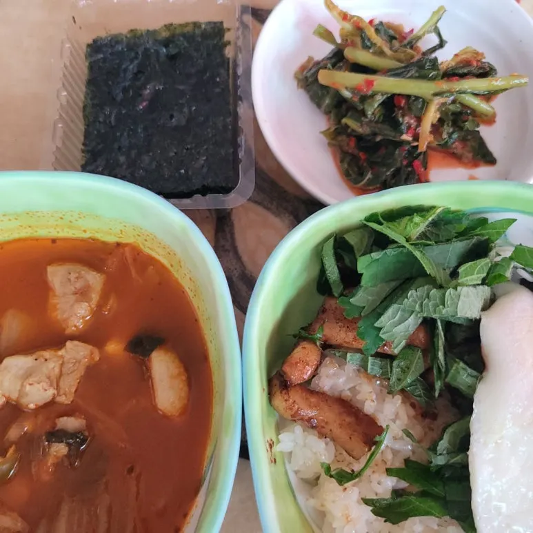 큰 딸이 볶은 고기에 계란, 김치찌개, 열무김치, 김을 준다. 신의 한 수인 깻잎까지 썰어 넣는다. 이럴 때 쓰는 말이 '신이 한 수'다. 없어도 되지만 넣었을 때 배가 되는 맛. 관심 한 숟가락을 더 넣은 맛이 된다.