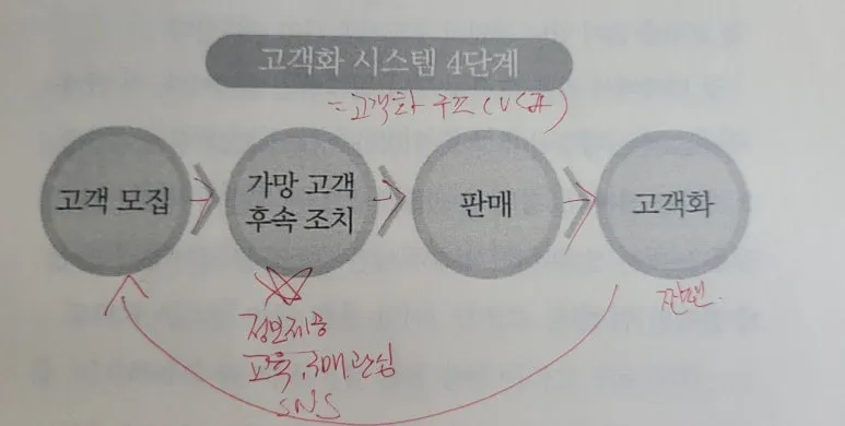 고객화를 만드는 방법 1~4단계가 핵심입니다. 고객 모집-> 가망 고객 후속 조치(정보제공) ->판매 ->고객화(찐 팬)->고객 모집이 반복되는 시스템을 구축하라는 내용입니다.