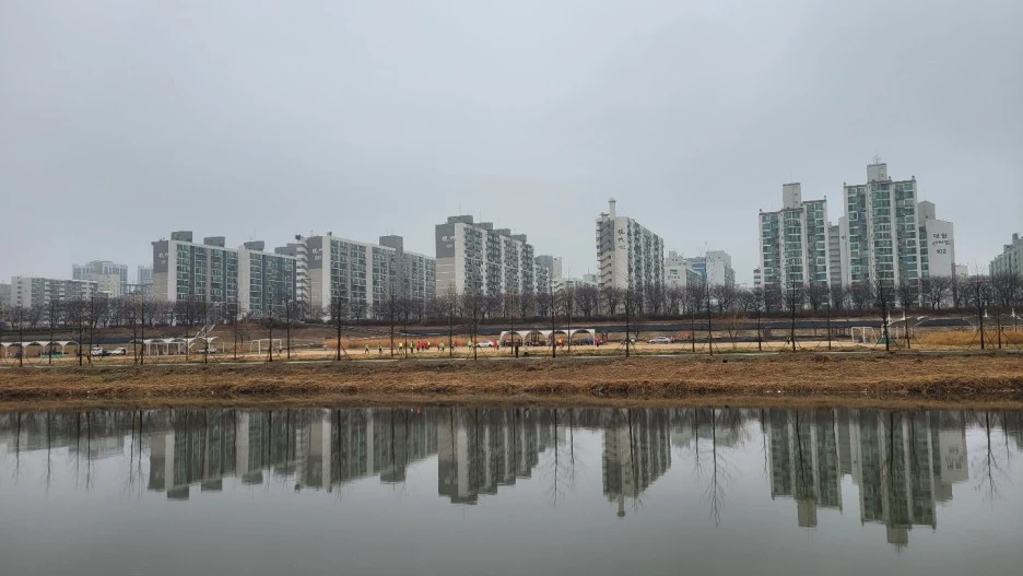길 건너에는 회색 하늘이지만 안양천 물빛에 비치는 물은 마음을 평안하게 하는 운치가 있습니다.