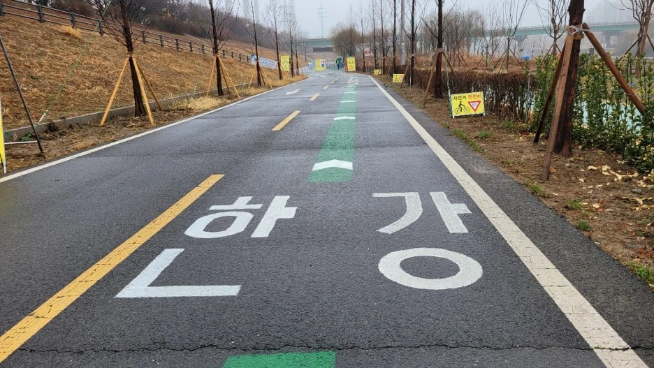 한강까지 편도가 10km 되기 때문에 한강 물을 보고 오리라고 생각하고 달리기 시작했고 '한강'이라는 도로 위의 글만 봐도 가슴이 뛰더군요.