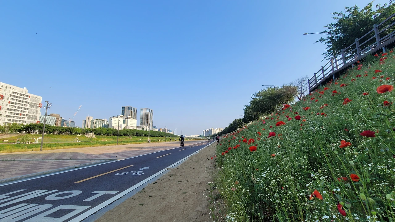 한강공원에 있는 편의점을 향해 간다. 5월 말의 한강 편의점은 나들이 온 사람들로 북적인다. 겨우 물과 초코파이 대신 오예스 과자를 사고 다시 광명으로 달리기 시작한다. 10km가 넘었으니 저들처럼 잔디밭에 앉아서 풀을 배개삼아 하늘을 쳐다보고 싶다는 유혹에 빠진다. 그러지 못할 것도 없지만 그러지 못했다는 아쉬움이 지금에서야 든다. 다음에는 그래 봐야겠다.
