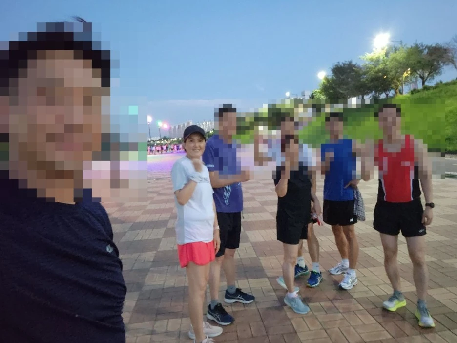 마지막 1km는 목도 마르고 힘도 없어서 겨우 달리고 있는데 멀리서 정*님이 마중 와주셨어요. 호흡을 맞추고 마지막 스퍼트를 해보자고 하셔서 있는 힘껏 속도를 냈습니다. 마지막에 스퍼트를 하지 않으면 달린 것 같지가 않고 왠지 찜찜합니다. 있는 힘껏 에너지를 발산해야 시원함과 성취감이 생기는 것 같습니다.