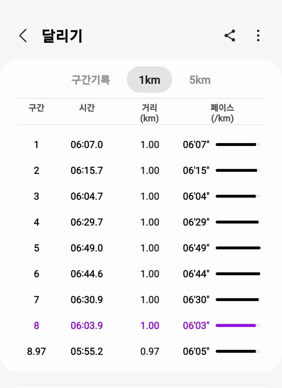 3km를 광명 마라톤 클럽 멤버들과 같이 워밍업을 한 후 각자 속도에 맞게 '야소 800'을 시작했습니다. 1~2회는 괜찮더니만 5~6회에는 다리가 후들후들 거리더군요. 뱃속에 있는 에너지까지 쥐어짜는 느낌이었습니다. 평소 레이스와 달리 숨도 턱턱 막히고요. 9회 거의 9km를 달렸는데 그래도 끝까지 달려서 마무리했습니다.