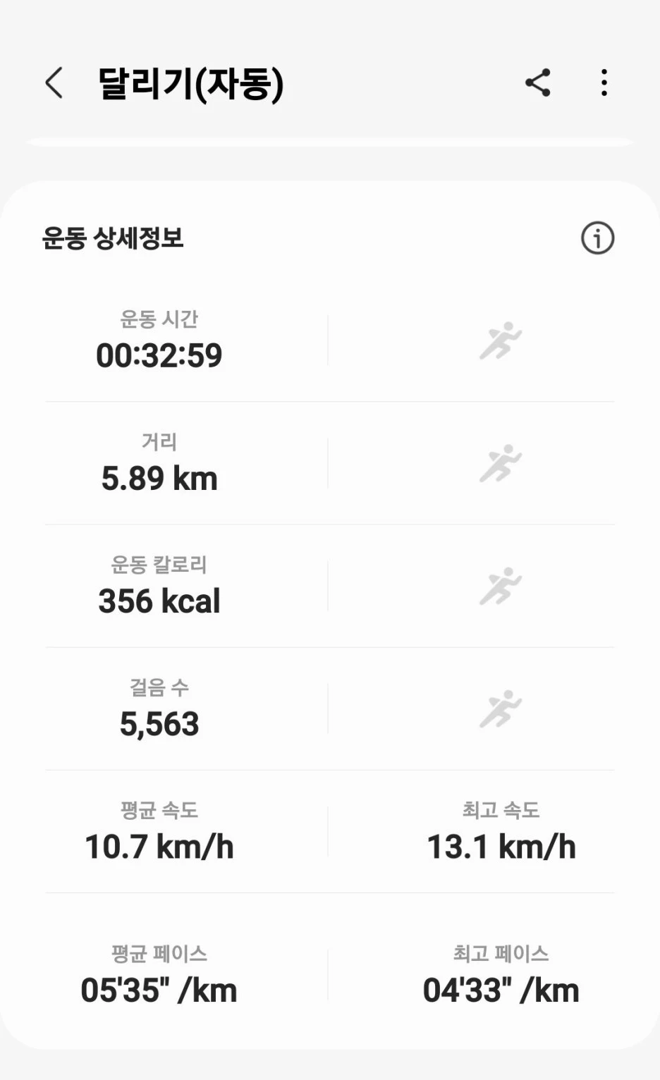 같은 날 아침에 '야소'800'이 이렇게 힘들 줄 모르고 5.8km 모닝 달리기를 했는데요, 그것도 전력 질주를 한 거죠. 평균 페이스가 5분 35초가 나오도록 달렸으니까요. (평상시 6분 50초~7분/km)