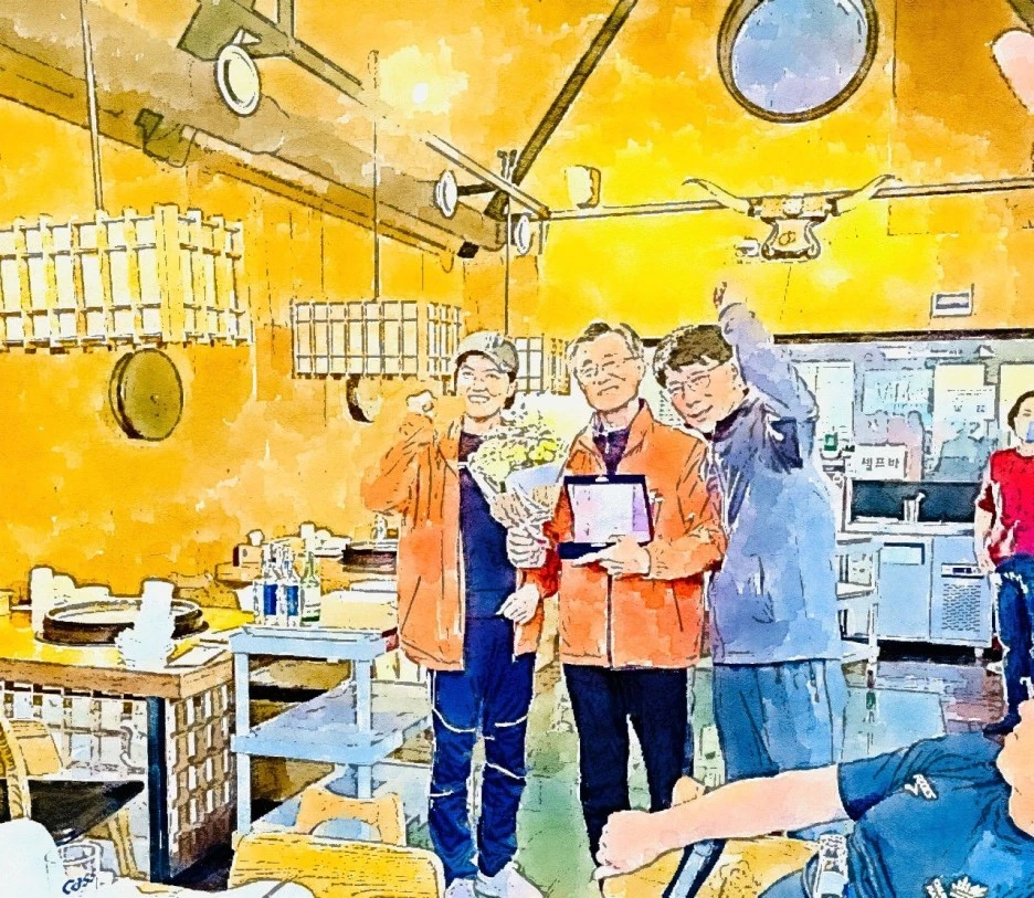 이 00님의 으쌰 으쌰 목소리가 도로 가득 퍼진다. 평상 시라면 시끄러울 목소리가 이리도 힘이 난다. 도로에 있는 사람들이 그 소리에 쳐다본다.
