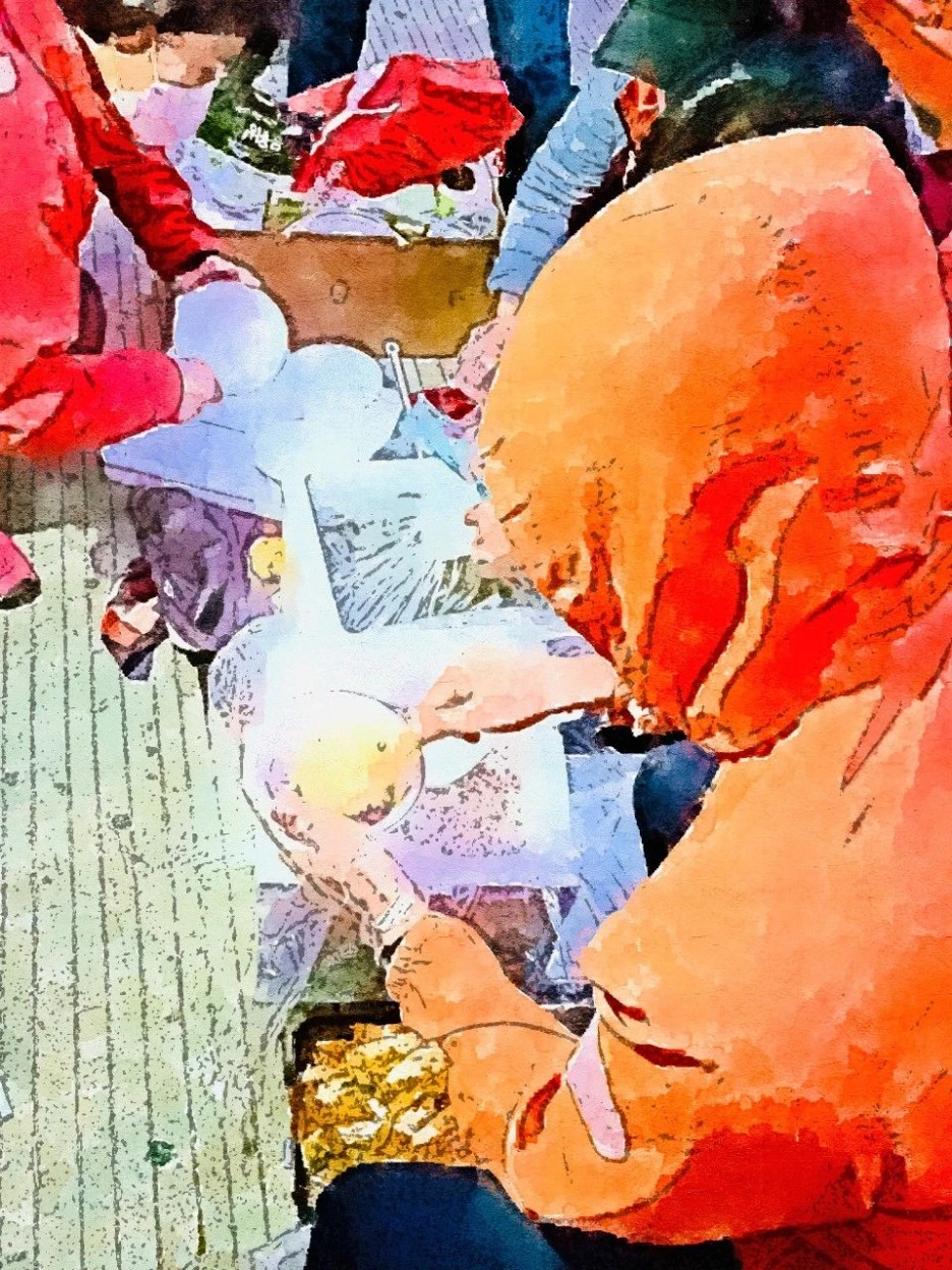돗자리를 깔고 뜨끈한 밥과 시래깃국, 김치, 김, 떡을 먹는다. 김이 모락모락 나는 밥을 보는 순간 눈시울이 혼자 뜨거워진다.