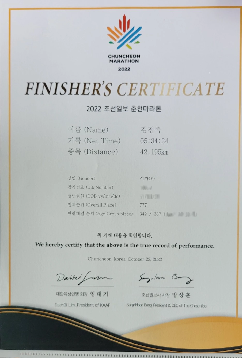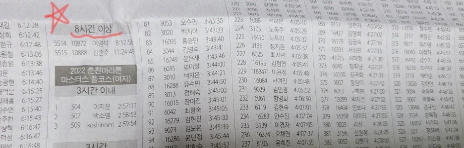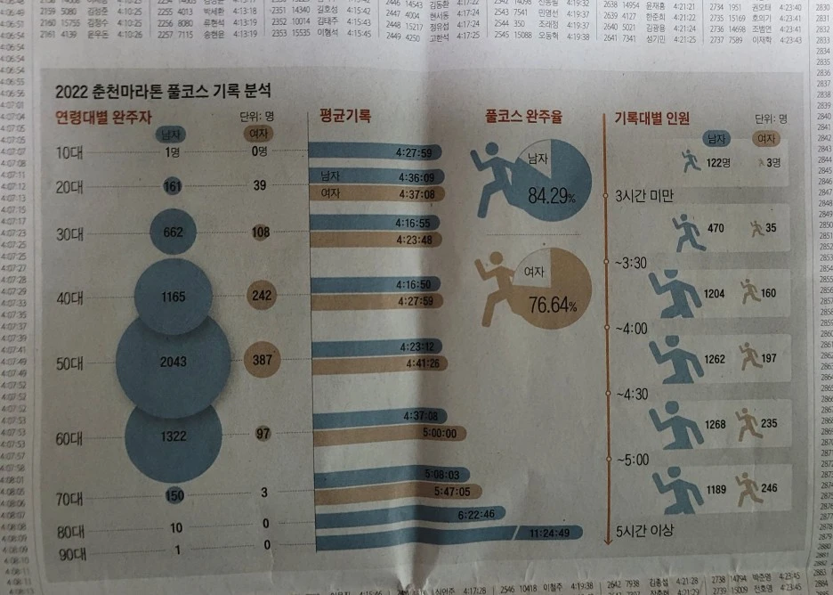 조선일보 2022 춘천 마라톤 완주자 섹션