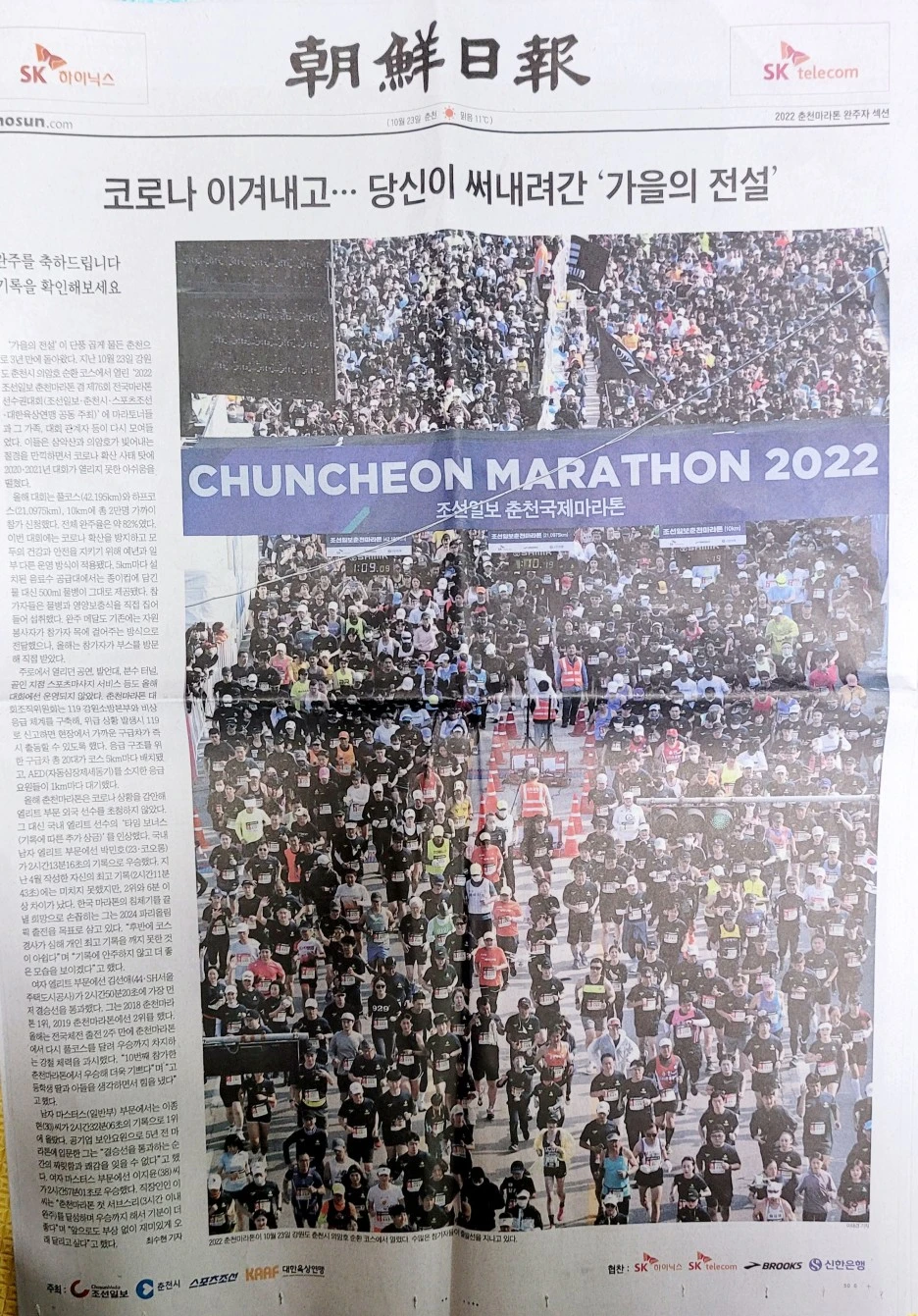 조선일보 2022 춘천마라톤 완주자 섹션 신문