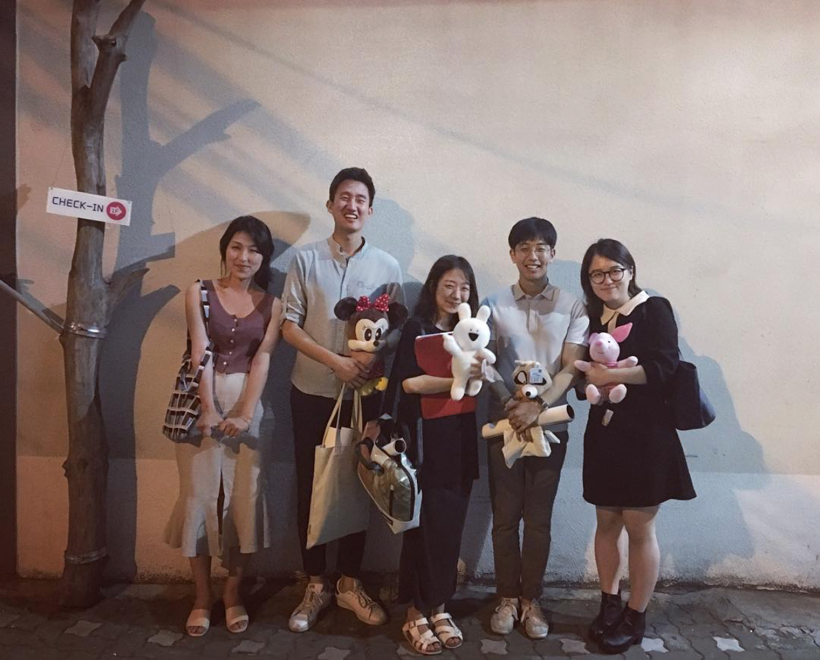 영화 <경복> 혹시 보셨나요? '영화가 뭐 이래' 로 시작했다가 '미친 너무 좋아...' 라고 눈물 흘리며 엔딩 크레딧과 마주한 영화인데, 그 영화 속 주인공들이 운영하는 영화 아지트가 있어요. 몇 달 전 오픈한 연남동의 <남국재견>이에요. 영화 모임 사람들과 그 곳에 갔다 찍은 사진이에요. 저 빼고 다들 인형을 들고 있네요? 근처에 인형뽑기 집에서 제가 다 뽑은 거에요.