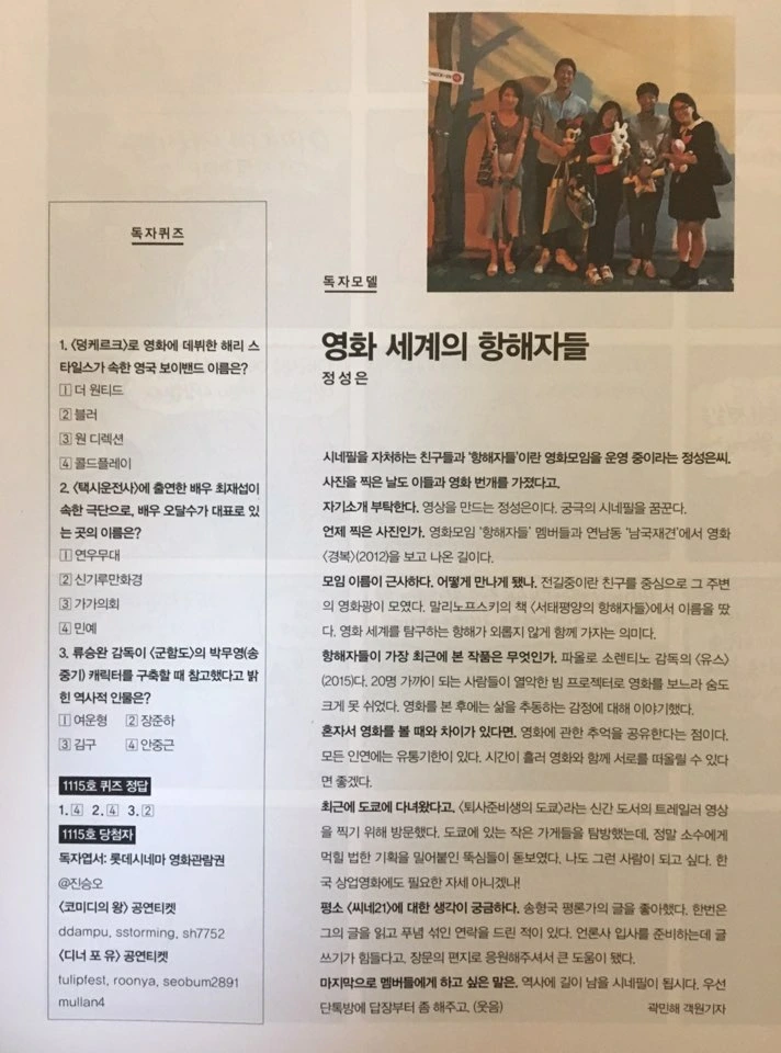 <항해자들> 모임 사진이 독자모델 사진으로 채택되어 간단한 인터뷰를 했다.