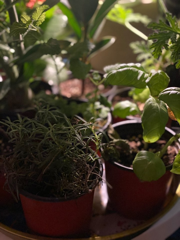 최근에는 특이한 모종이나, 해외에서 온 종자로 자란 특이한 식물들이 많이 판매된다. 물론 그런 식물도 나중에는 좀 더 데려오고 싶다. 지금은 앞에서 얘기한 10년이 지난 행운목과 몇 달 전 트럭에서 1개에 2천 원으로 판매된 작은 식물들, 동네 꽃집에 들렀다가 구석에서 숨이 죽어 있던 고사리과 식물, 차 마실 때를 위한 애플민트, 요리에 사용하기 위한 로즈메리, 허브류처럼 식용 식물을 함께 키우고 있다.