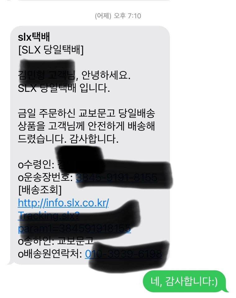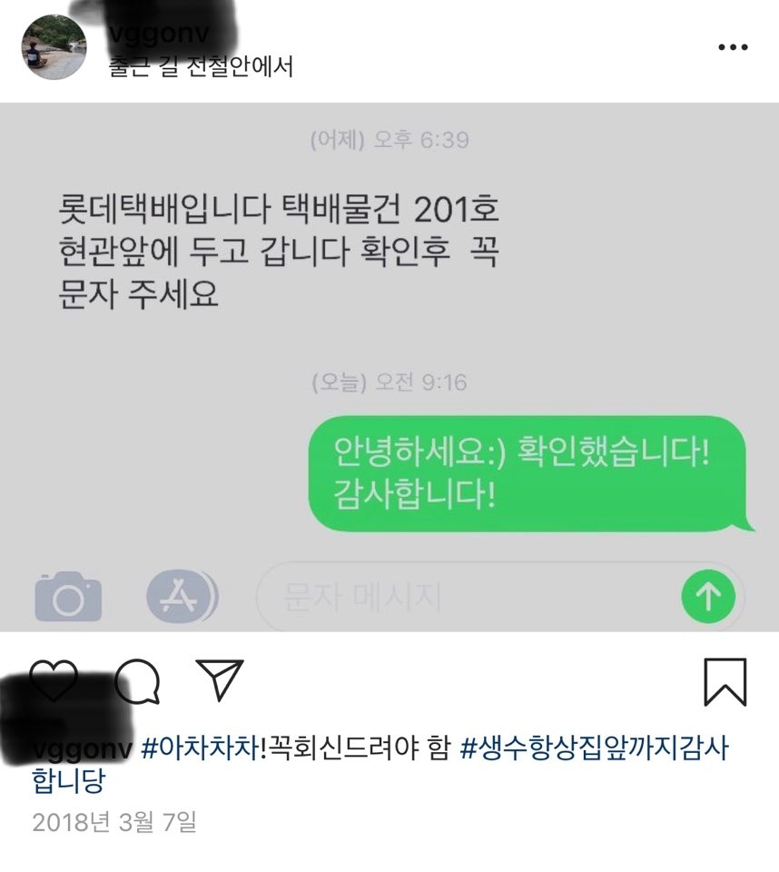 확인 문자를 부탁하셨는데도 불구하고 그냥 대부분을 지나쳤던 난 처음으로 택배 기사님께 회신 문자를 보냈다.